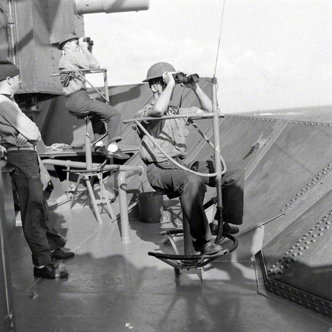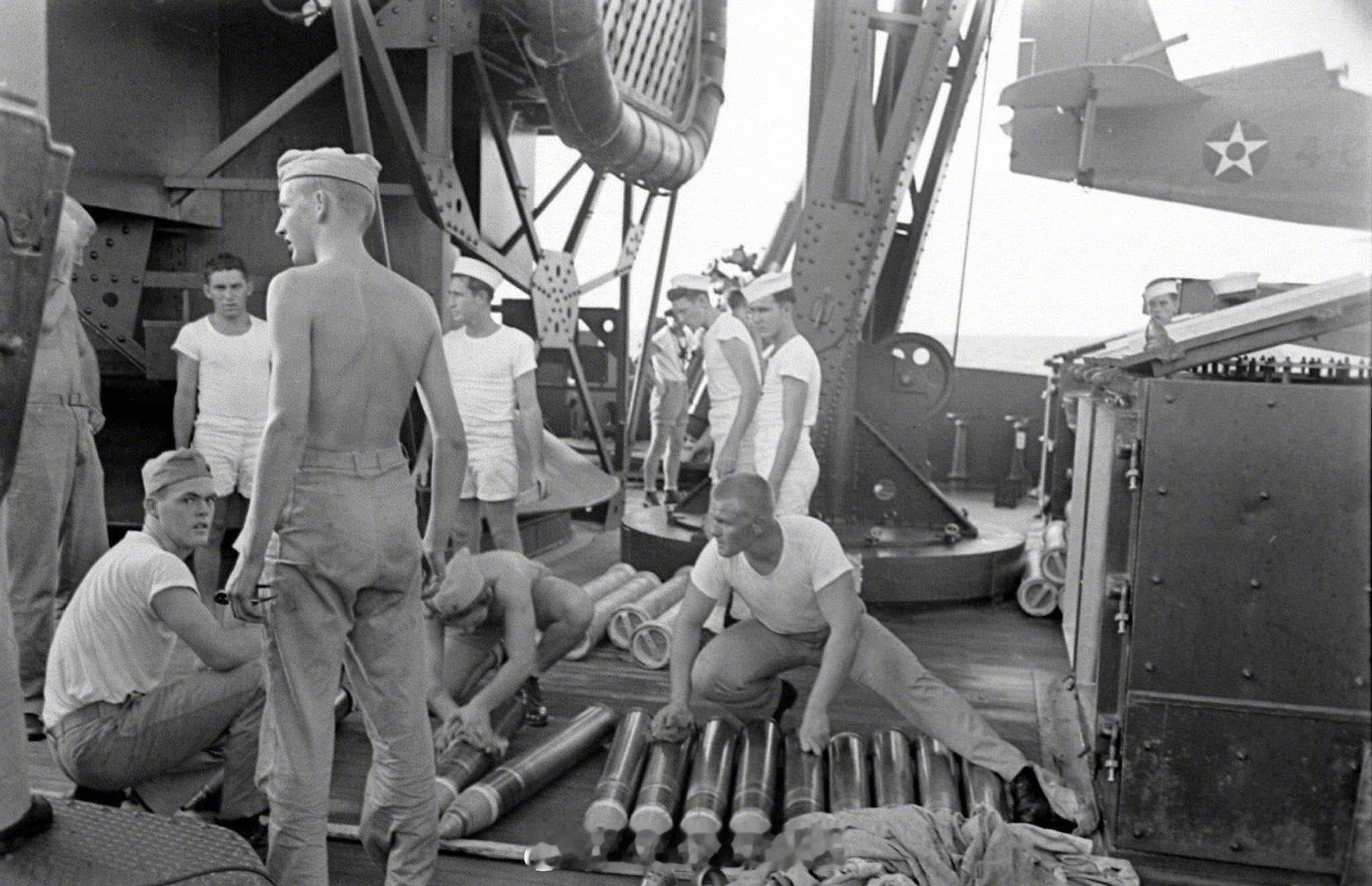 烽火问鼎计划 1941年12月8日,珍珠港遇袭后,第12特混舰队在搜索日本航空母舰期间,记者于"波特兰"号重巡洋舰(CA-33)上所摄。这些照片展现了珍珠港遇袭消息传来时,一艘美国海军舰艇在太平洋上的状态。从部分画面中可见:官兵开始随身佩戴手枪,弹药箱被启封,敌舰识别图被张贴,整体戒备状态明显提升。第12特混舰队原计划于1941年12月5日从珍珠港出发,向中途岛运送飞机。舰队由"列克星敦"号航空母舰、"芝加哥"号重巡洋舰、"波特兰"号重巡洋舰、"阿斯托利亚"号重巡洋舰及五艘驱逐舰组成。1941年12月7日日本袭击珍珠港后,第12特混舰队放弃前往中途岛的任务,转而搜寻日本航空母舰。12月8日上午9时,"印第安纳波利斯"号重巡洋舰加入舰队,舰上的威尔逊·布朗海军中将随即接任特混舰队指挥官。因未能定位日方航母,第12特混舰队于1941年12月13日返回珍珠港。