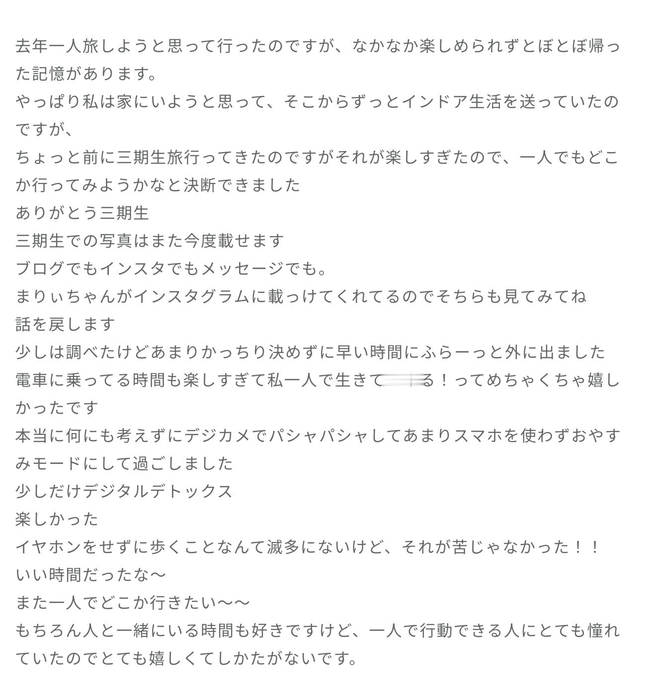 はるよ「この前一人で秩父に行ってきました。自分から外に出ることはないので、前日からドキドキしながらいろいろ調べていたのですが本当に楽しかった。メガネと帽子とマフラーお気に入りです。冬大好き。歩きました。空気最高。デジカメで自撮りしてみた。難しい。」