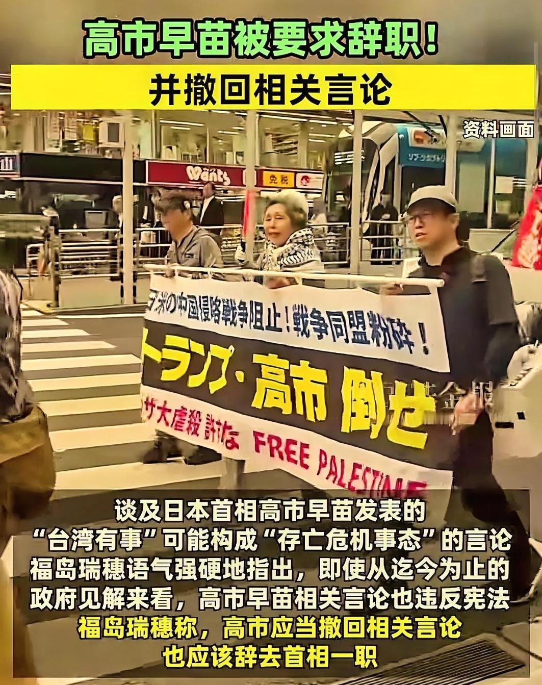 日本政坛又掀风浪! 社民党党首福岛瑞穗直接公开喊话, 让首相高市早苗赶紧辞职, 现场气氛紧张得不行! "高市必须下台!现场突然响起愤怒的呼喊声。原来高市早苗把"台湾有事"和日本"存亡危机"硬联系到一起,这一下子就引发了关于宪法解读的大争议。冲绳的反战团体更是直接批评:这简直是想把整个日本都拖进战火里当战场啊! 这位作风强硬的女政客福岛瑞穗可不是一般人。她是东京大学法律系毕业的高材生,今年年初还去了咱们国家访问。当时在抗战纪念馆献花的时候,缎带上"以史为鉴"这四个字,在现场特别显眼。她还清楚地说:绝对不能让普通老百姓再被拉进战争里去! 社民党这个有年头的政党,以前还出过日本首相,现在却有点被大家渐渐淡忘的意思。不过福岛带领的这支"护宪小队"却没放弃,坚持说:我们不要用武力,要走和平的路! 一边是首相那边放狠话,另一边是反对的人激烈反对,日本这局势接下来会怎么走?和平宪法还能保得住吗?这背后,到底藏着多少暗流?