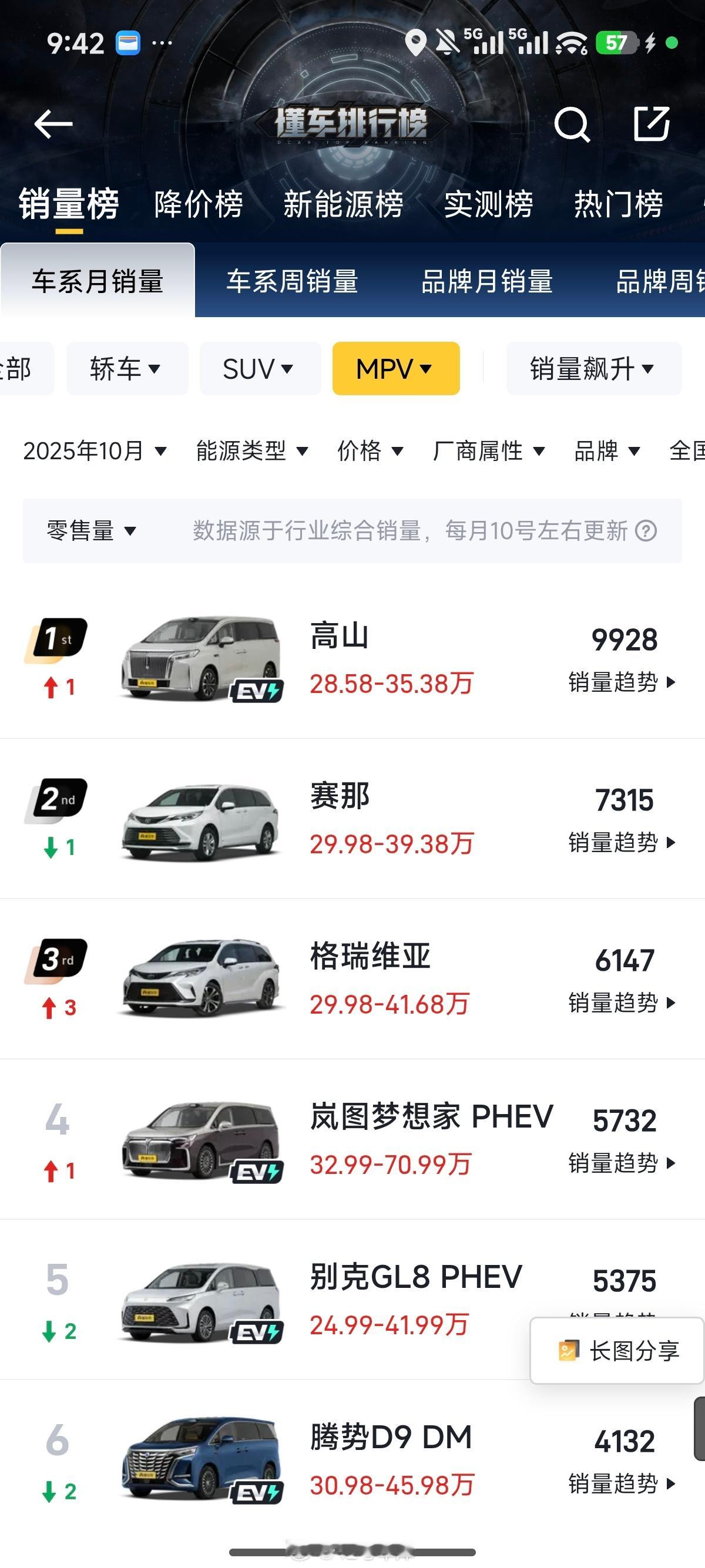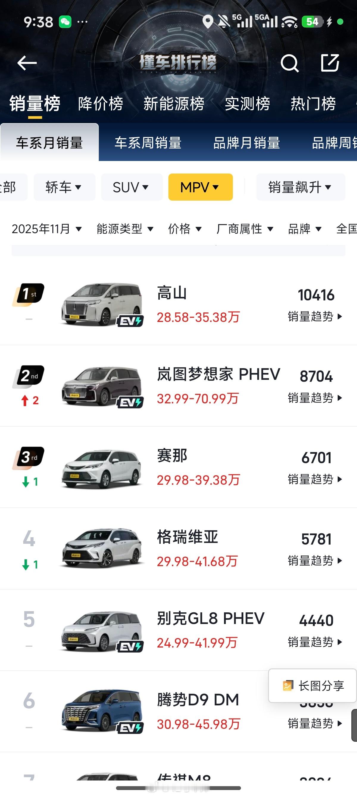 刚刚看了一下,魏牌高山目前已经是不限能源形式,不限价格的 MPV 车型销量第一了,有点期待 12 月的成绩,大家觉得高山 12 月能拿下三连冠吗?魏牌高山全国mpv销量冠军