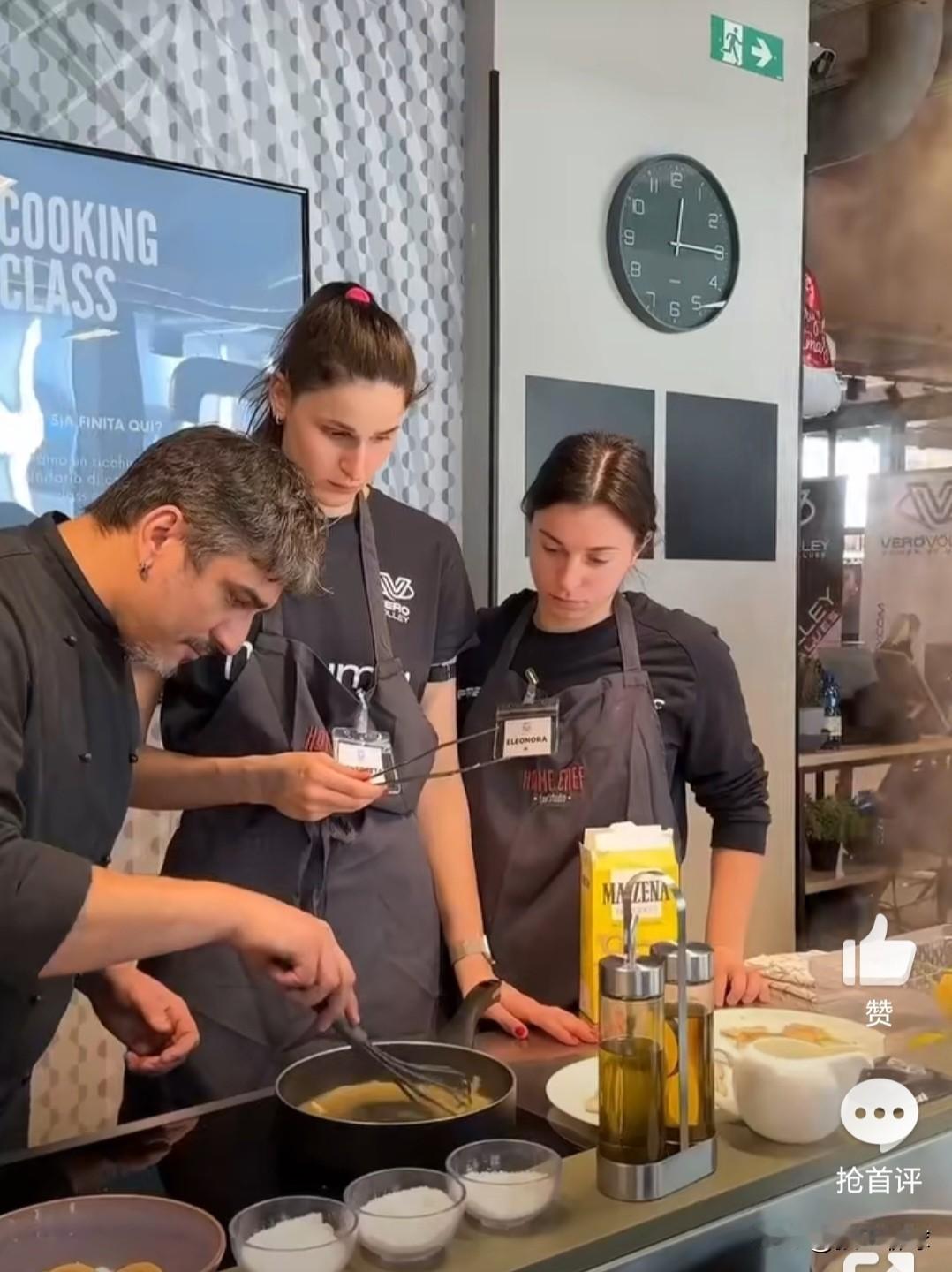 【米兰集体活动为什么没有李盈莹】朱婷所在的科内利亚诺去巴西打世俱杯了,米兰女排没有比赛,比较闲暇,队员们出现在蒙扎一家叫“HomeChef”的烹饪学校… 艾格努学做饭去了,还挺像一个大厨的[笑哭][笑哭][笑哭] 为何没有李盈莹呢?妹妹去哪里了?