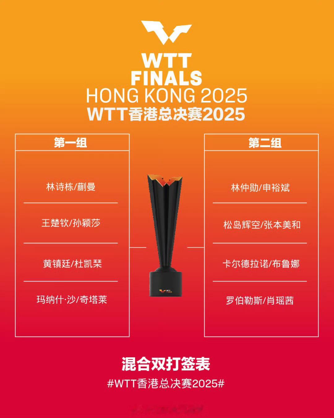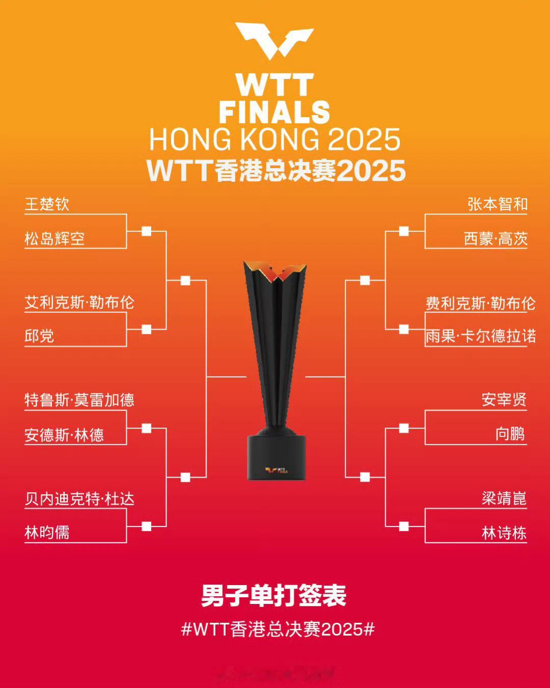 2025香港总决赛|签表 12.10-11.14女单&男单&混双孙颖莎王楚钦健康完赛