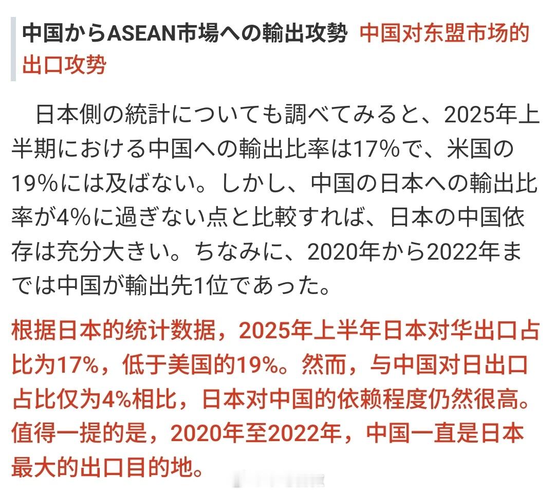 不安,日本媒体调查:日本对华依赖程度依然非常高,而中国对日本市场并没有那么依赖,非常不安!⭐20年前还需要调查,现在这个中国制造业总产值占全球35%的时间点,不只是买到中国工业品的几率是三分之一,而是你买到的任何工业品都有35%原材料零件来自中国。音频实证日本有意滋扰中方训练