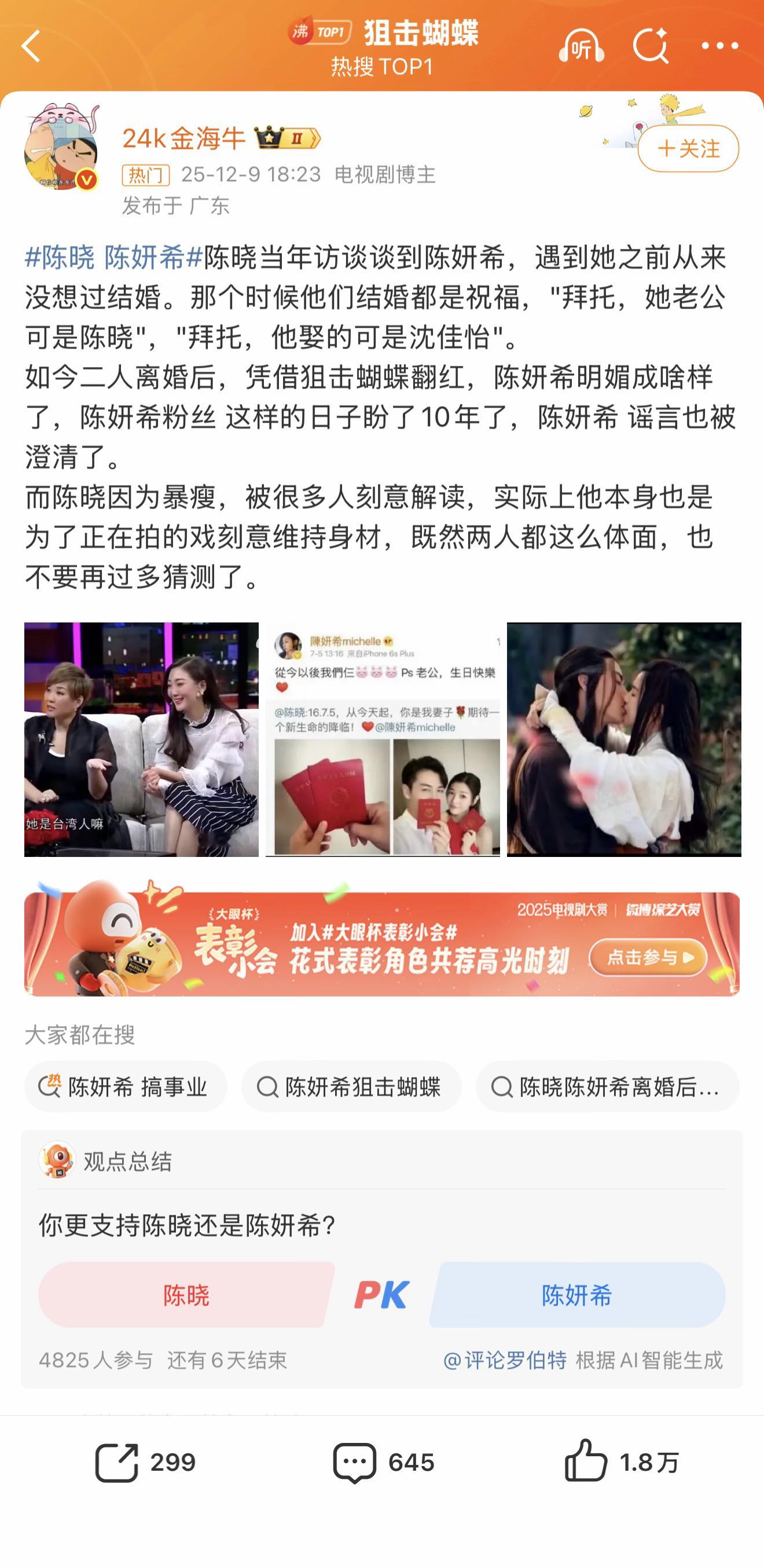 狙击蝴蝶不反对重新出发拼事业,但是这热搜买的也太尬了,新剧还要再炒作一波离婚…