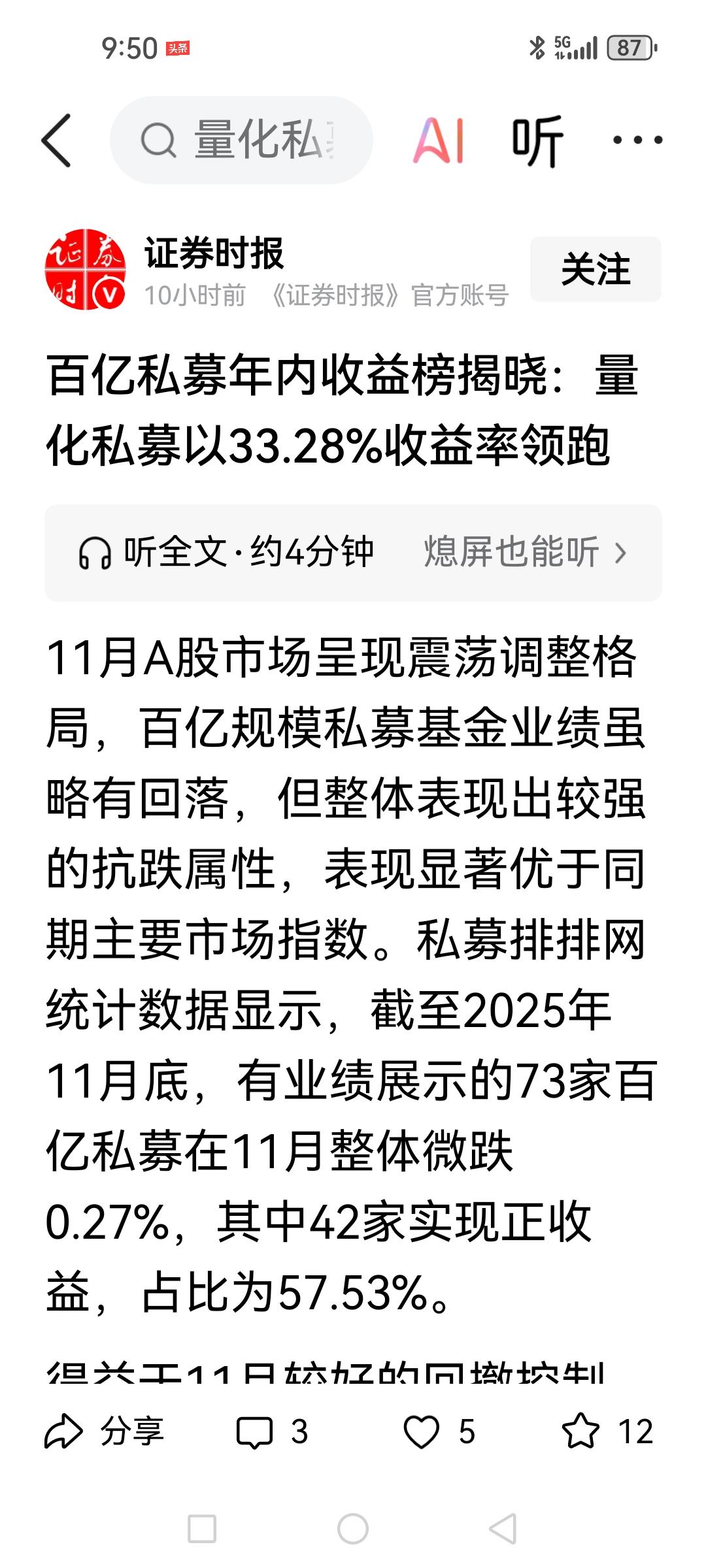 百亿量化私募成绩斐然,他们赚的钱是谁亏的钱? 量化交易的对手盘就是那些短线交易者,有短线交易者就有量化的生存空间,短线交易者越多以及交易越频繁,量化的镰刀就越有用武之地。那些试图靠短线交易一日暴富的,最终多数成为量化利润贡献者。 唯一能回避量化镰刀的办法就是中长线或周线以上波段操作,就像水里蛰伏的生物,我不出来浮现,你捕食者就干瞪眼。