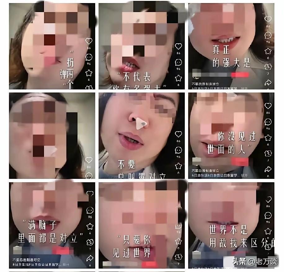 真是无语了,跑到日本的中国女人,对于日本的反华,她沉默不语,却对我们指手画脚,批评教育我们,真不知是哪根弦搭错了,她批评我们扔了两个核弹不算什么,不应该制造对立等等。这些人怎么不分青红皂白,乱说一通,真不知她脑子里在想什么,对立究竟是谁挑起来的,难道她没有意识吗!她在日本遇事的时候不要求助大使馆,应该去找日本右翼势力,看一下他们怎么对她友好的!