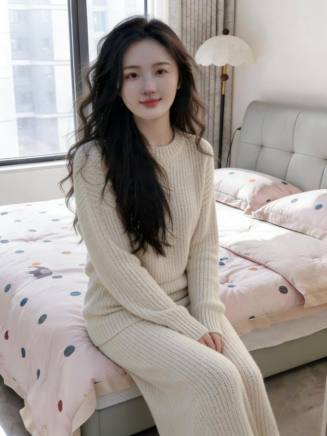 素衫闲坐玉床前,长发蓬松拂晓烟。 莫道人间无静处,一窗晴色伴悠然。