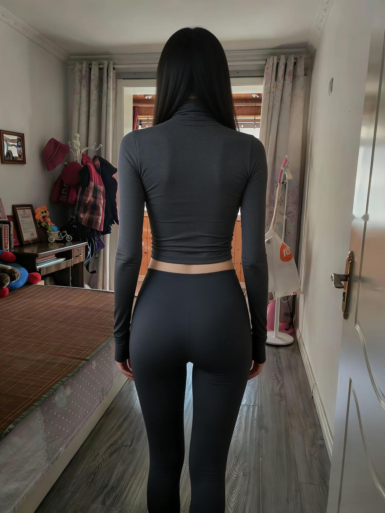 炭灰色的布料裹着香肌 每一寸弧度仿佛都在说话 脊椎挺立成笔直的诗行 从颈后延伸向腰际的低洼 ~ 运动装消解了装饰的浮夸 只留身体最本真的表达 背影对着阳台的晨光 像对着一场未奔赴的出发 ~ 房间里的小物件略显冗杂 她却用姿态,把喧嚣按下 肌肉的记忆藏在纹理里 在静寂中开出美艳的娇花