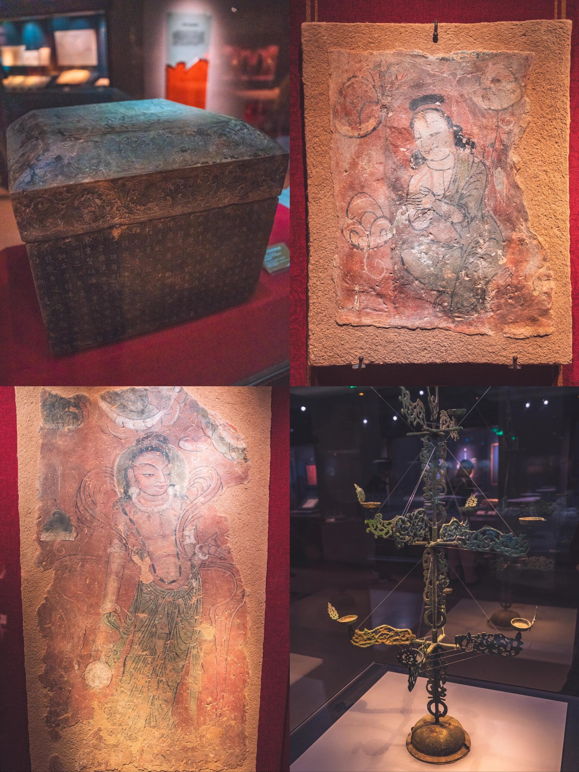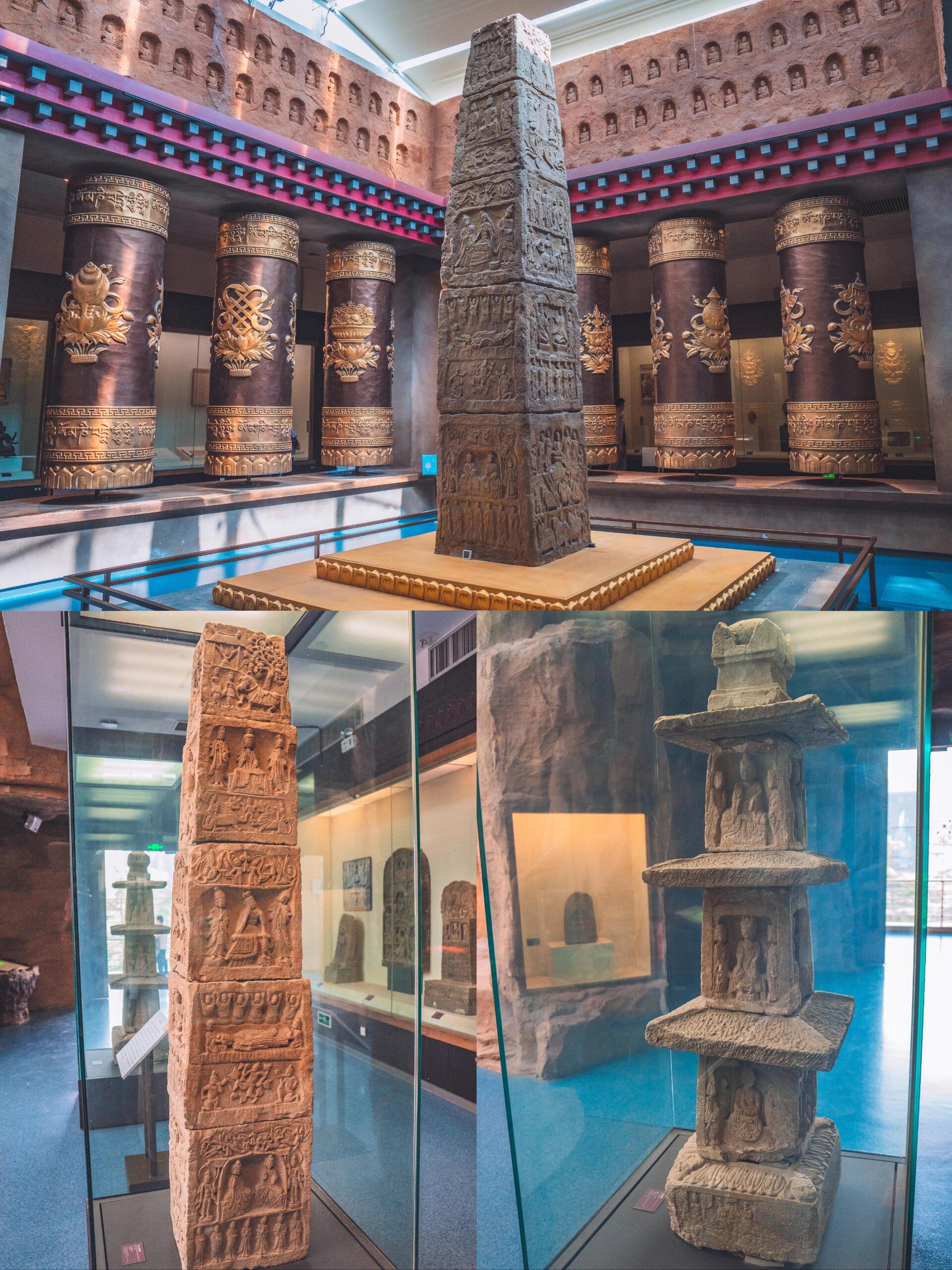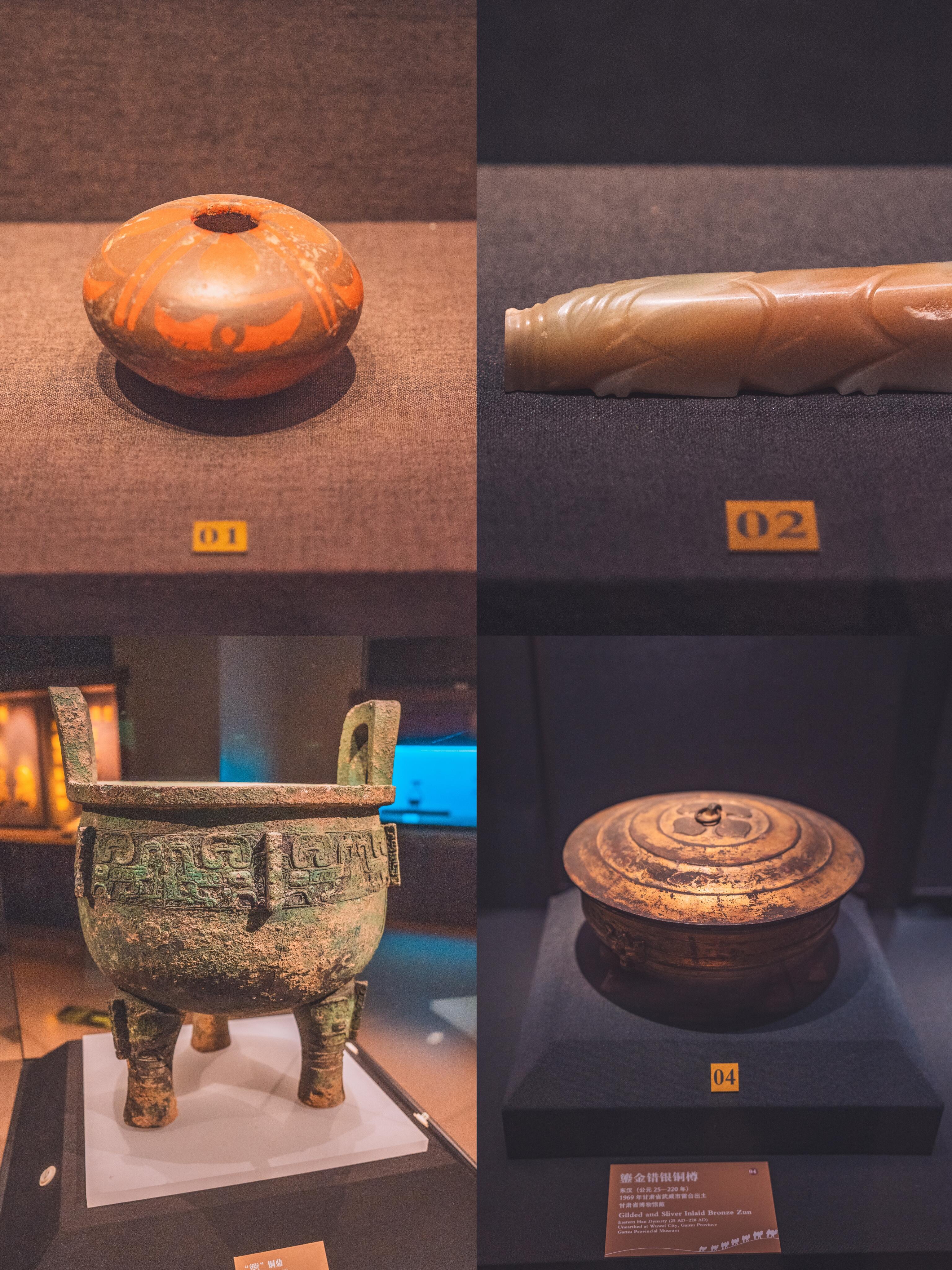 🚇交通 地铁1号线“西站什字”站A口出,步行500米直达! 🎫门票:免费!提前3天预约(或者购买付费展览票也可以进) 开放时间:每日 9:00-17:00(16:30停止入场,周一闭馆别跑空) - 逛展顺序:建议先冲VR展(1楼)→ 再看免费常设馆(2楼铜奔马+3楼彩陶,震撼感翻倍) 🎥一楼黑科技:穿越七大石窟 •全国首个全VR石窟大展 •“不思议境” 之名,中西方美学动态全方位讲解7大石窟,建议去体验,而且可以免预约进入博物馆!!! • 💎二楼必冲:丝路顶流 • 铜奔马(马踏飞燕):C位出道!侧面飒爽正面憨憨,只有单蹄立燕身却能千年不倒,物理美学天花板 • 玻璃莲花托盏:梦幻蓝莲花!元代琉璃透光绝美,暖光灯下自带仙气滤镜,甘博颜值担当 • 驿使图画像砖:古代“外卖小哥”疾驰图!无嘴设计象征“守口如瓶”,中国邮政图腾原型 • 📿三楼宝藏:穿越5000年 • 人头形彩陶瓶:新石器时代“齐刘海少女”!瓶口人像披发齐额,萌系远古手办 • 佛教艺术厅:1:1复刻莫高窟+麦积山石窟!免奔波看飞天壁画,光影沉浸感拉满。