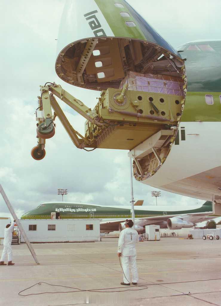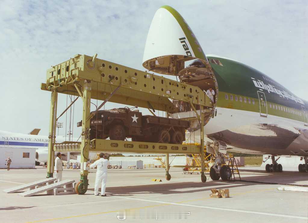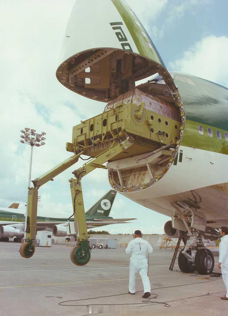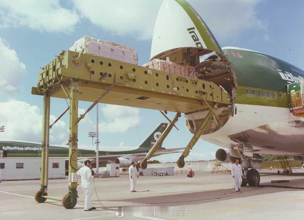 烽火问鼎计划 上个世纪70年代,波音公司为伊拉克航空公司制造了747-200C的自动装载设备。自重6.6吨,需要30分钟部署或储载,很多航空公司因为它要占用有效载荷,而没有订购。 该平台能够自主装载多达四个主货柜,可在机头或是机身侧面操作,并吊装重达近 13.6 吨的货物。