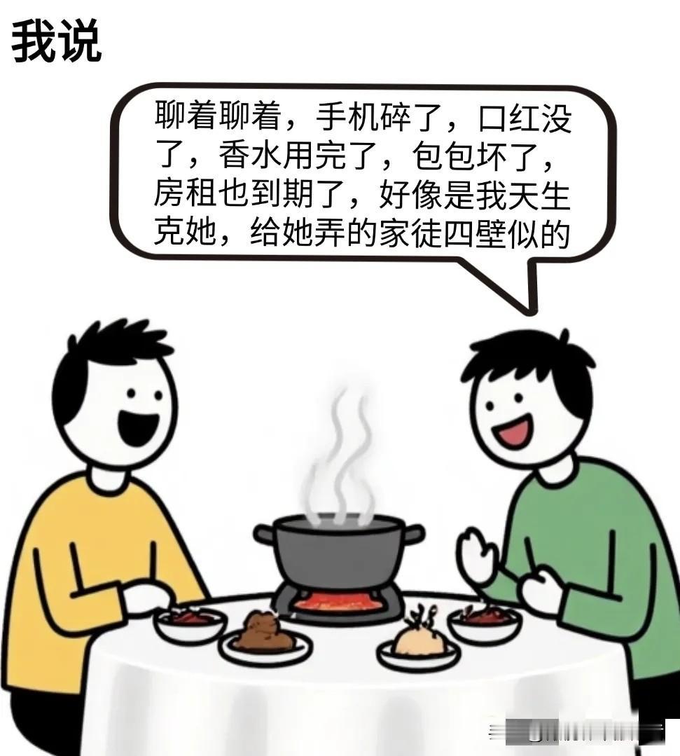 开心漫画:兄弟给我介绍个对象,兄弟问:和那个女孩聊的咋样?我:不敢聊。兄弟很疑惑,我:聊着聊着…手机碎了,口红没了,香水也用完了