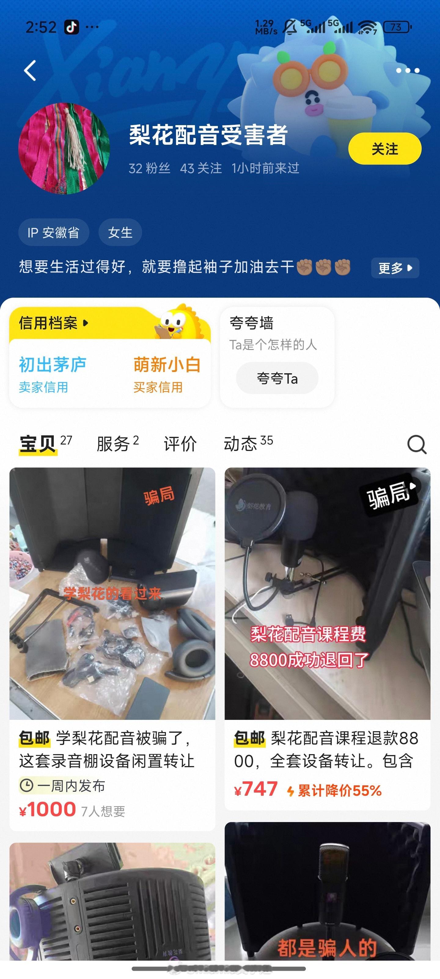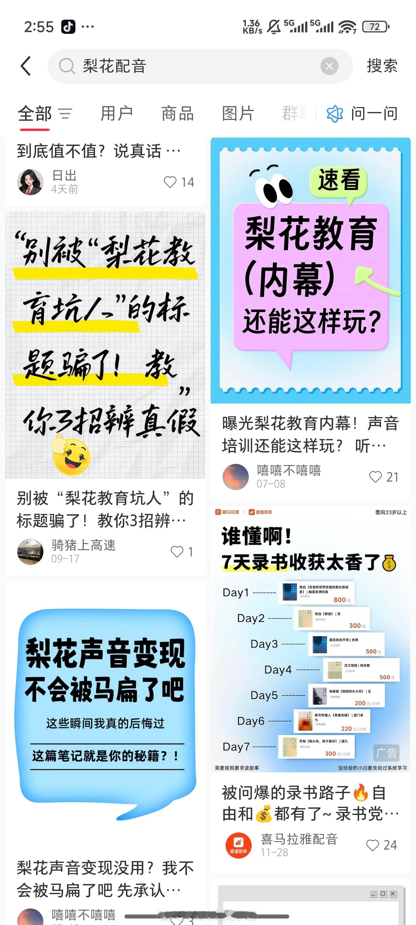 昨天!我发现我那个非常勤奋好学的妈,在什么梨花配音什么喜马拉雅配音app分别购买了各种朗诵阅读的课程及工具~这里几千那里几百的,总金额累计上万元!而到手的什么所谓阅读器,什么所谓录音设备,都是几十块的华强北烂货!而每天,都有各种所谓的“老师”在企业微信上,用非常ai的话术引导她鼓励她,说她有进步,再努力点可以做有声阅读的配音者,能够接单赚外快,一篇1000字的配音能赚3-500呢!于是我妈勤于练习,不仅没有太大进步,还被夸到以为自己可以媲美播音主持专业能赚这几百块了!可惜事与愿违,一直以来都没接过一次单,倒是投入的设备和“进修课程”越来越多这算是新型诈骗吗?我已经报警了,110告诉我,每个社区都有一个反诈民警,可以要求民警上门劝导,但那些垃圾设备大概率退不了,课程也可能退不了了,但我想阻止我妈持续入坑…毕竟没有谁比我更懂什么素人都能配音这是不可能的事!现在的有声小说都有ai配音了,要一个普通话不标准的老年大妈干什么????但是为这个事吵过几次架,我一说她就生气,不仅一周不理我,后续还加大投入资金国家能管一下这种所谓的“配音赚钱”平台吗?学生该上的补习班都没得上了,那些老师转头就去忽悠老年人