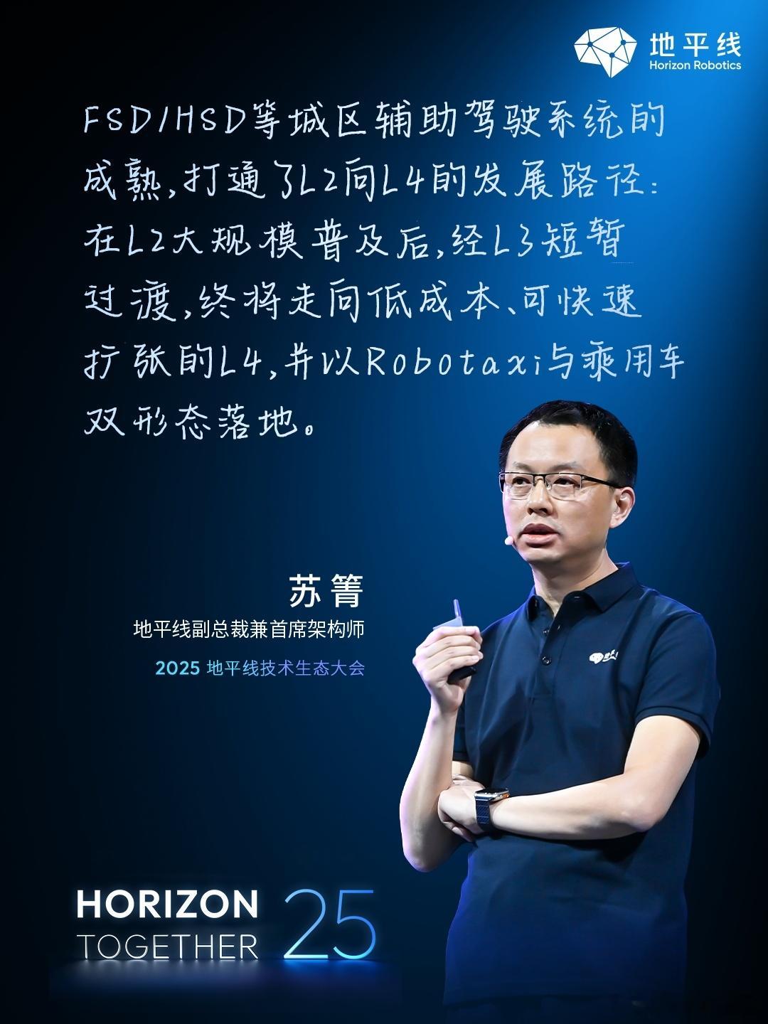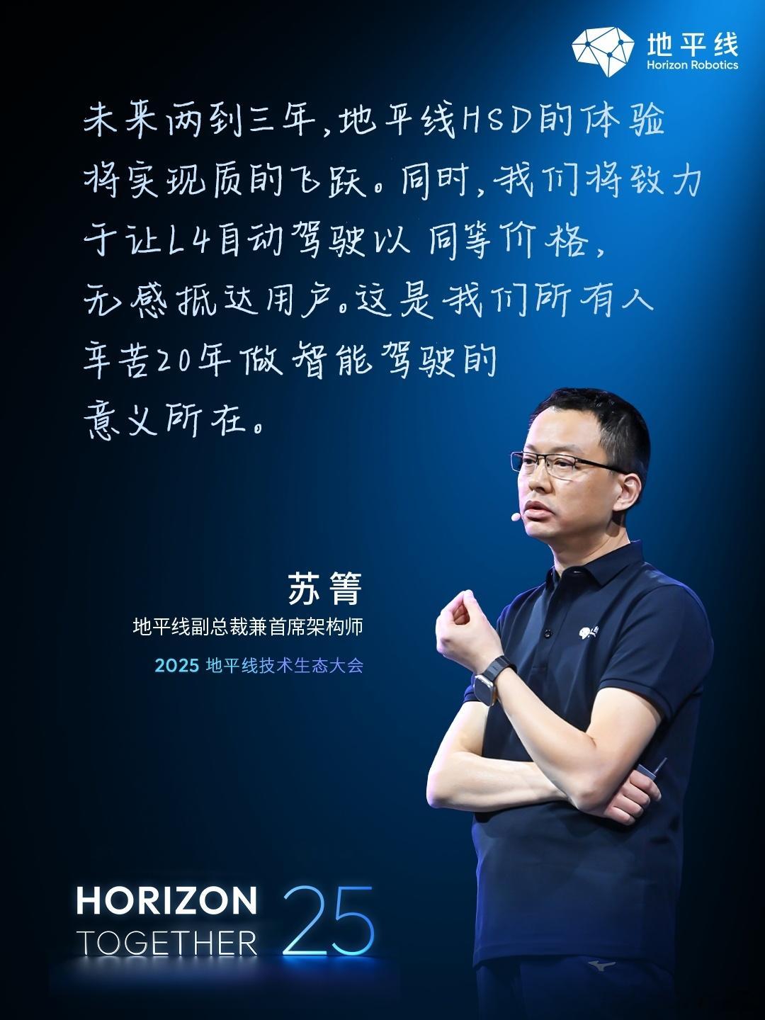 地平线副总裁&首席架构师苏箐:未来两到三年,地平线HSD的体验将实现质的飞跃。时不我待,希望这一天能早点到来,2026年的竞争在加码了。2025地平线技术生态大会人人都是中国智驾合伙人