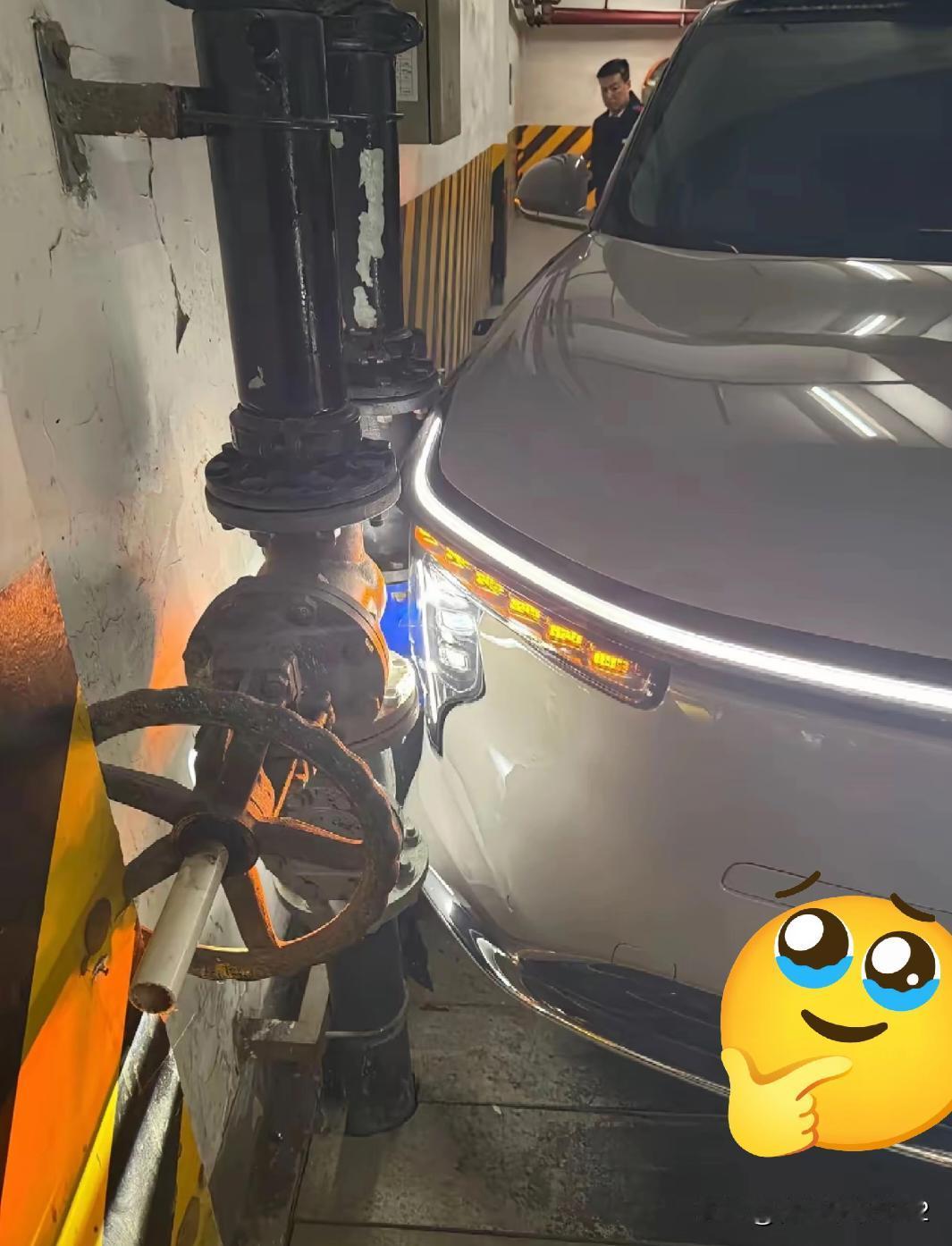 过没有把握的窄路以后记住这个要领:左边无限贴近,右边听天由命。 这是我的问题吗,出口这么窄小,当时一直看360和透明底盘,脑子一热,过!结果刮到了一点,刚好这一个自动抽水立管在360的斜边的盲区上,在画面里没有显示出来[捂脸]