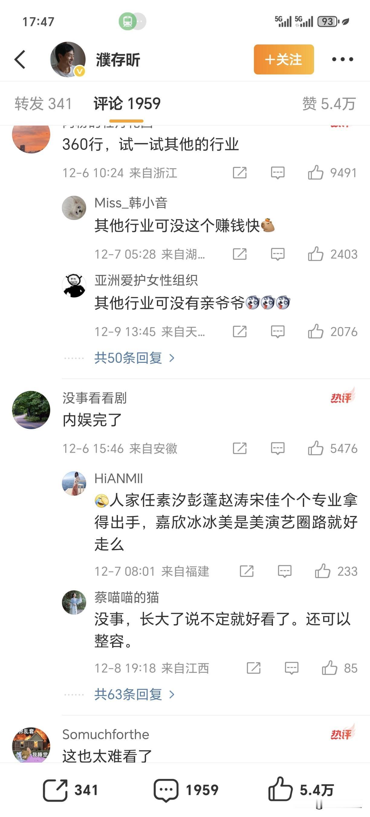 老艺术家濮存昕怎么也没想到,外孙女参演了一部短剧,自己只是发几条动态夸夸外孙女,结果却引来一大堆针对孩子长相的恶评。 网友说话还是很直接的,直言孩子“颜值不适合娱乐圈”,劝她试试别的行业。还有人觉得,这是“星三代”又在靠家里的资源轻松入行,吐槽“内娱要完”。 看了一下,容貌确实不算出众,但人家年纪还小,没准以后会有变化呢。而且演员没有说一定要好看,长的不好看的演员也不是没有,还是重在演技。