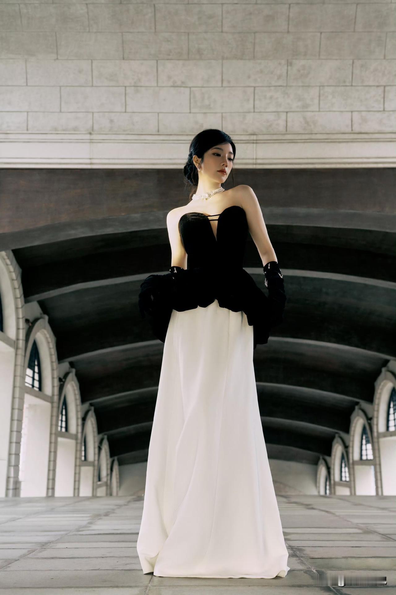 王丽坤这身裸金长裙也太会穿了!细碎流沙般的质感,抹胸加一字肩刚好露出好看的肩颈,