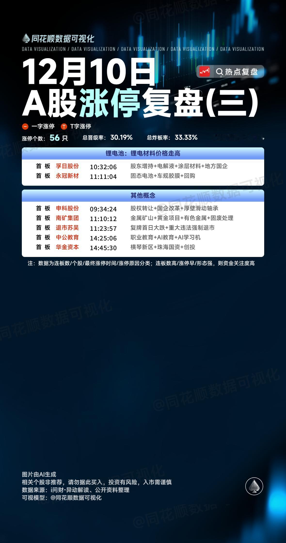 12月10日复盘:永辉超市、万科A、龙洲股份、海马汽车、厦门港务隔日走势的一些看法! 1、永辉超市(零售+海峡) 早盘竞价永辉超预期大单一字板开盘,再加上同样大单一字的东百,整个零售方向成为了市场最强方向,而永辉也从始至终没有出现过开板,但是它整体成交额依然达到了14亿! 盘后的龙虎榜西大街买入2.4亿,郑州农业路、国投朱雀大街、浙商宁波分、方新侠都是排板买入,卖盘主要是机构为主,昨天上榜的游资席位集体锁仓状态,永辉今天的表现确实太超预期了,小群的板块效应凸显真的非常强,而且它还在低位,所以虽然它流通市值较大,但是在当前这个市场依然有资金硬顶涨停,但是从今天的成交额看,它虽然封单非常多,但是封成比还是要远小于东百的,隔日一旦零售方向有分歧,它或许会有开板放量承接的机会,只要东百一字够强,接力它的资金就不会少,从小群近期的战绩看,接下来零售成为主线的概率还是很大的,那么永辉继续强势承接连板的概率就很大,毕竟整个零售其实能炒作的个股不多,虽然永辉流通市值偏大,但是一旦成为市场的绝对主线,以它的辨识度是很可能走出承接放量连板的! 2、万科A(房地产) 午后,房地产方向出现了强势拉升爆发,房贷贴息的消息面是有一定传播的,再加上市场今天情绪低迷,急需一个强势板块拉升出现带动指数,毫无疑问市场选择了房地产,而万科的直线拉升涨停无疑带动了整个地产方向的高潮表现! 盘后的龙虎榜江苏路、成都系等多个游资席位是主要的打板资金,卖盘多为长时间的潜伏资金,这样的榜单是把万科的股性激活了,但是整个地产方向能不能持续很难说,毕竟之前的AI手机也是非常火爆,中兴也是非常强势的涨停,但是之后持续下杀,所以隔日万科能不能走出趋势上行很难说,如果板块整体强,那么它作为中军就还有看点,反之,如果板块集体拉胯,那么万科自然就是一日游了! 3、龙洲股份(商业航天+海峡) 龙洲竞价高开不足3个点的表现是偏弱的,所以开盘后它是有一波明显的下杀,但是它毕竟是商业航天方向的龙头,所以很快出现资金承接回升,之后走出非常强势的触板回落,接下来长时间在分时均线上方震荡,午后在商业航天方向资金回流时有资金做多拉升封板,但是板上抛压非常大,直到临近尾盘才彻底封死涨停,走出了一个高位的烂板形态! 盘后的龙虎榜三个机构席位做了引导,西大街也是做T引导,卖盘欢乐海岸和宁波方向的两个席位集体止盈离场,这样的榜单只能算一般,龙洲最大的问题是隔日面临严重异动压制,近期去挑战的都没有好下场,再加上龙洲今天这么烂的形态,隔日预期就是大幅低开,它竞价能不能走出超预期表现是一大看点,如果商业航天板块有修复,它走出冲高还是可以期待一下的,至于能不能走出连板,小胖觉得概率不大,毕竟近期失败的例子太多了,商业航天整体炒作时间已经非常久了,再加上龙洲今天的涨停足够烂,很难会有资金去把它做成一只破局龙! 4、海马汽车(海南自贸区) 今天早盘最强的方向除了零售,就是有海南十五五规划的利好消息刺激的海南自贸区方向了,海马早盘的表现其实平平无奇,但是午后却出现了明显资金拉升做多,直到临近尾盘才有资金强势承接封板,走出了一个底部震荡区域的首板形态! 盘后的龙虎榜西大街是尾盘主要的封板资金,卖盘整体抛压并不大,海马这个涨停明显是量化引导下的封板,整个海南方向今天走出了非常强势的表现,隔日早盘惯性冲高的概率很大,再加上封关是明牌的12月18日,在这之前还是有预期的,海马虽然辨识度高,但是毕竟涨停时间偏后,隔日连板概率并不大,除非整个板块继续高潮表现,但是这样的放量首板给到溢价的概率还是蛮大的,所以对于海马,隔日应该更多的去找卖点,而不是接力! 5、厦门港务(海峡) 港务近涨停板的高开是非常强势的,但是早盘整个海峡方向是出现了一定分歧的,所以港务虽然开盘顶住分歧出现了封板,但是资金整体兑现的决心还是比较大的,所以它的二封迟迟不来到,但是很明显它下杀过程中的支撑也非常明显,再次拉升二封时整体还是比较强的,可惜之后海峡方向持续跳水,它板上再次出现了明显的砸盘,好在最终承接成功在11点刚过就封死涨停,有意思的是,它刚封住涨停,另外一只海峡高标安记反而出现了兑现,这样的承接就非常有意思了! 港务成了海峡方向唯一没有热门方向加持的高标了,再加上它今天回封后安记才出现炸板,这是不是巧合不知道,但它毕竟是早盘就封死涨停的个股,隔日给到冲高溢价并不过分,而且它同身位的东百是一字预期,所以它反而没有太多的竞争压力,如果海峡方向继续有强势表现,它或许依然会有资金去承接做,所以对于港务来说,竞价的表现可能就代表着资金对它的态度! 文中的内容仅为分享和交流,不作为实际操作建议!