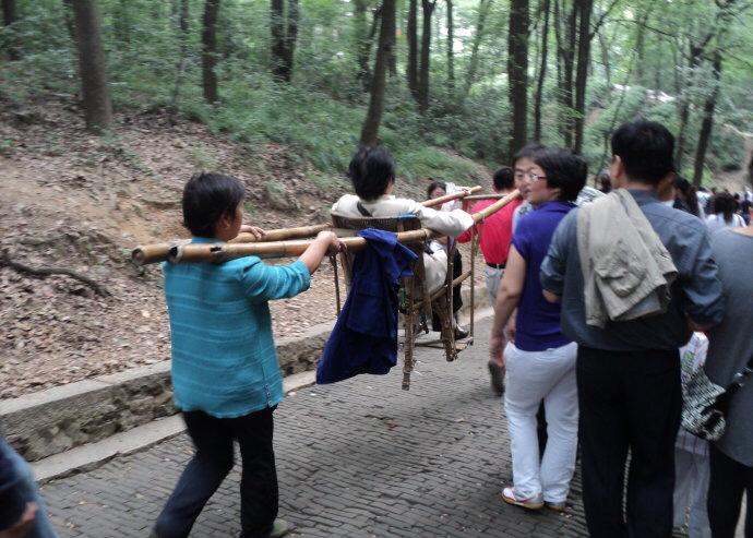 峨眉山滑竿争议:别让偏见消解市场的温度 峨眉山山道上,轿夫汗流浃背抬着滑竿,乘