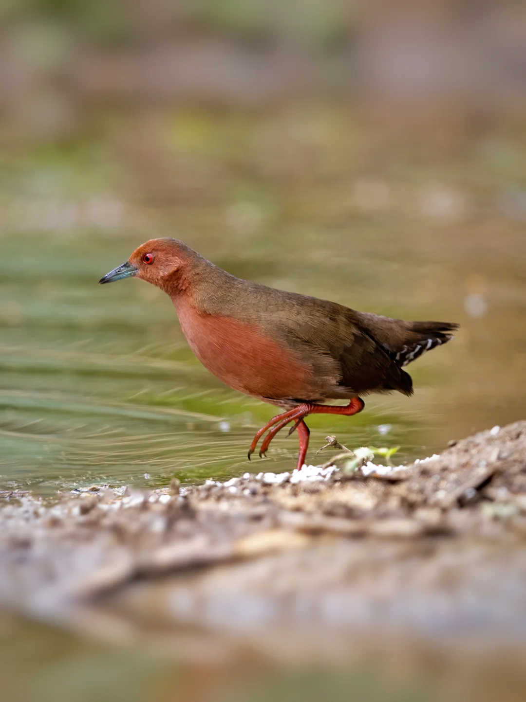 原创拍摄于2024.11 红胸田鸡,鹤形目秧鸡科小田鸡属。是我国南方的留鸟,北方的夏候鸟。 红胸田鸡顾名思义,从脸下部到胸都是鲜艳的橙红色,腿和脚也是橙粉色,眼睛也是红色。非常漂亮。不过和其他田鸡秧鸡一样,它们生活在沼泽水田里,性情十分隐秘,善于在隐蔽处活动,胆子很小。这也是好的,毕竟它们一直以来都是在水田里被捕猎的对象。