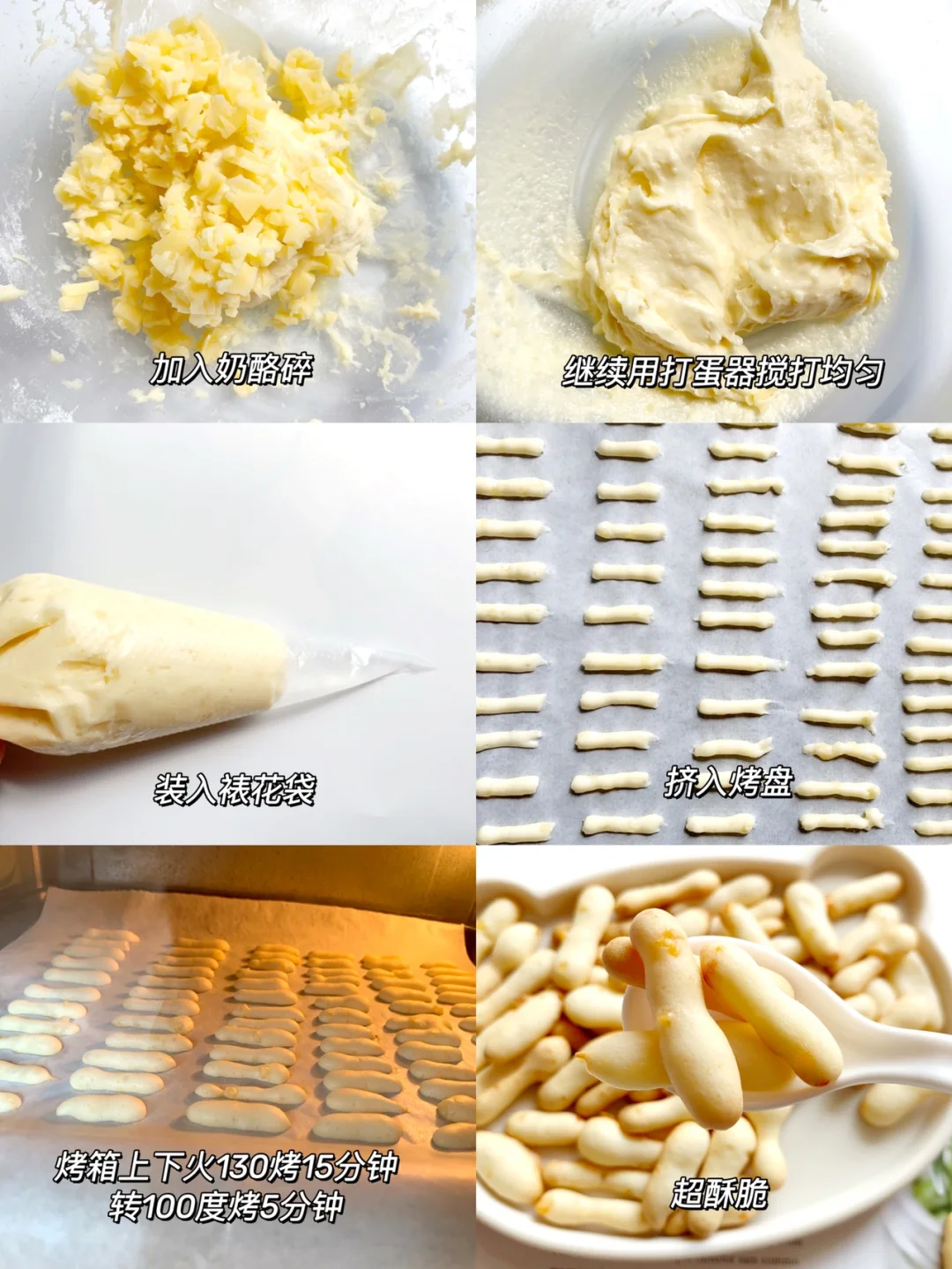 4⃣️烤盘铺上油纸,挤成小条状