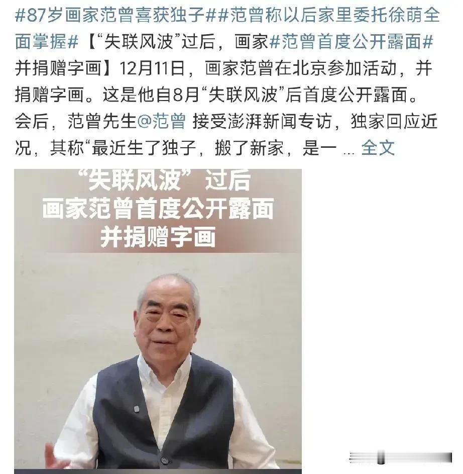 87岁范曾说: “最近生了一个独子……还要继续发挥我个人的特长”。 范曾老先生德高望重,海内闻名,其书法、国学、历史、绘画等特长不可历数。 而今87岁依然神采奕奕,真可谓老当益壮宁移白首之心,前途不坠青云之志: 确实应该继续发挥他的“特长”!
