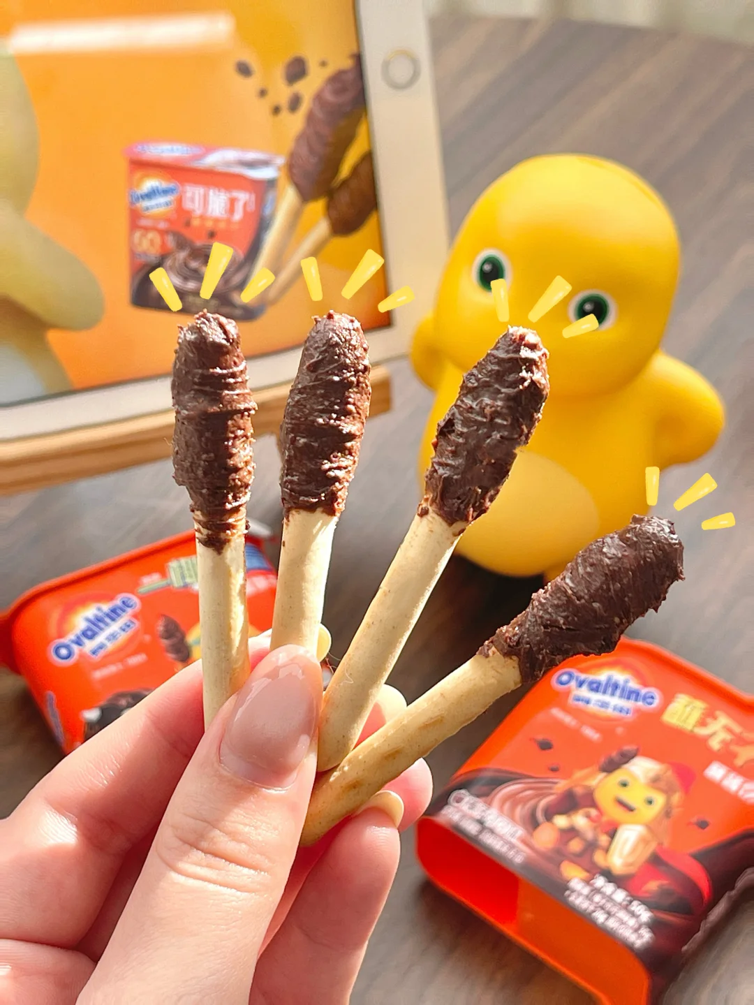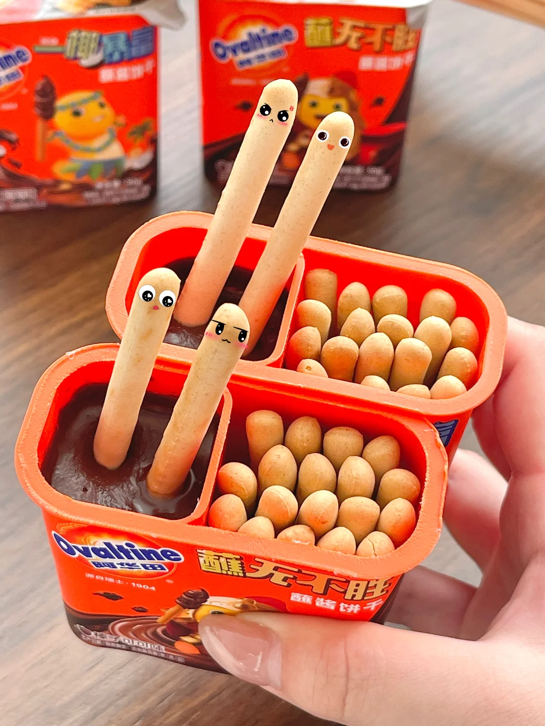 迫不及待撕开包装把tree tree的全麦饼干蘸上满满的阿华田酷脆酱!