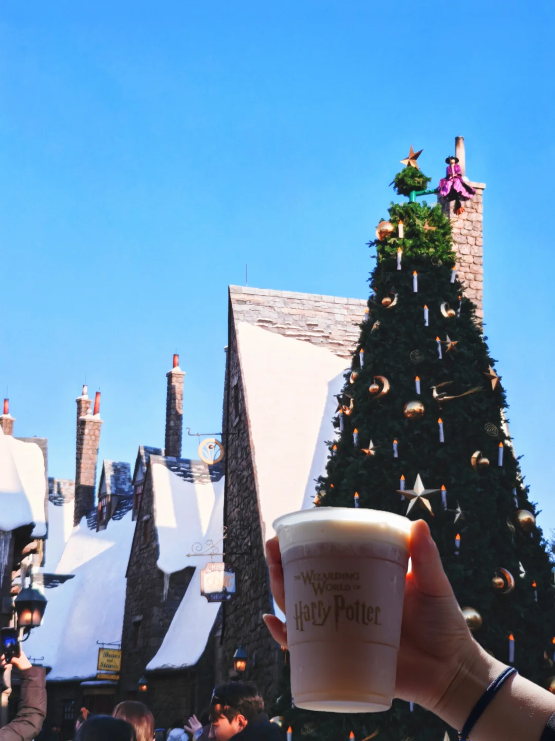 ⭐在哈利•波特的魔法世界™里,圣诞季霍格莫德村被“白雪”覆盖,圣诞花环装饰让这里圣诞氛围满满。被礼物环绕的魔法圣诞树在村里的一角,带着你的魔杖,念出咒语,会有不一样的惊喜哦~~