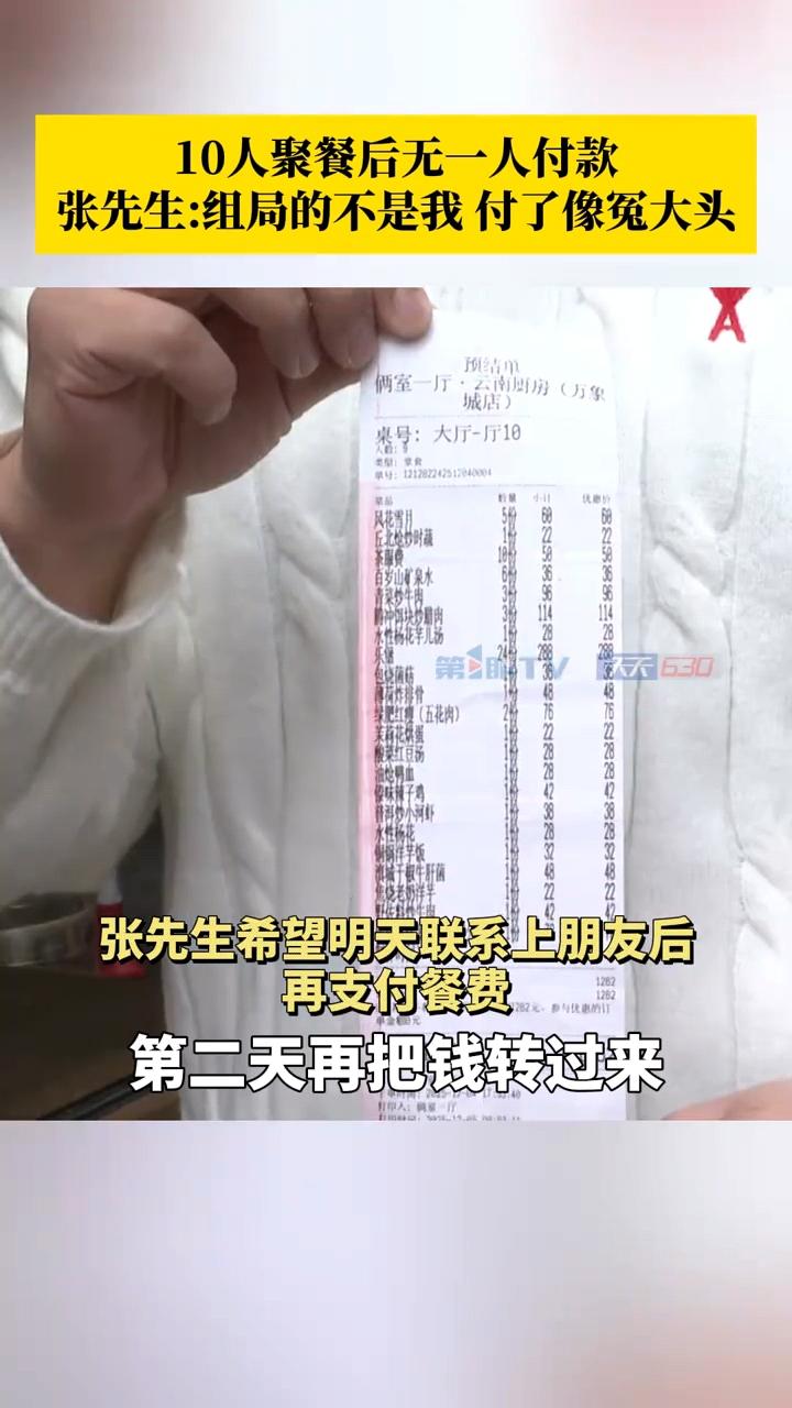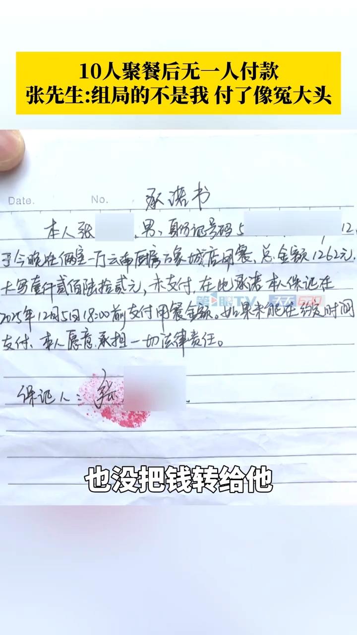 真是丢脸啊! 不就一顿饭钱吗? 10个人难道连一顿饭钱都凑不齐吗? 近日,重庆一家餐馆老板,遇到了一件非常窝心的事情。原来前一天下午四五点的时候,来了10个人吃饭。 这群人吃了很久,然后陆陆续续地有人离开,直到大概十二点的时候,只剩下一个人。 这人也想走,被老板拦住了,老板让他付钱,可是他却说,这顿饭不是他组的局,是他的朋友组的局,他不能付钱。 老板就让他联系他朋友,结果他朋友不接电话。这男的坚持要走,老板肯定不让啊。 两人僵持不下,最后老板报警,民警赶过来以后,进行了调解。最后,男子写了一份保证书,并加了老板联系方式后离开。保证书说第二天下午六点钟之前会付款,逾期会承担一切后果。 结果第二天时间到了,男子还是没付钱。老板联系男子,男子说他联系不上自己朋友,这个钱他暂时付不了。 后来男子给了他朋友联系方式,老板联系了男子朋友,结果对方表示确实是他组的饭局,但是现在手里没钱,付不了。 老板心里那叫一个憋屈啊,怎么会有这样的人啊,老板心里非常无奈。 有律师表示,这种情况,餐馆老板可以起诉,拿回餐费。 不过,这事对于老板来说,真的太无语了。不起诉吧,心里憋屈。起诉吧,费时费力。 这群人的素质也真是狗狗的,这算什么朋友,不就是酒肉朋友吗?10个人去吃饭,一顿饭钱都没人愿意出,这叫啥事。 你觉得写保证书的男子该不该出这顿饭钱?