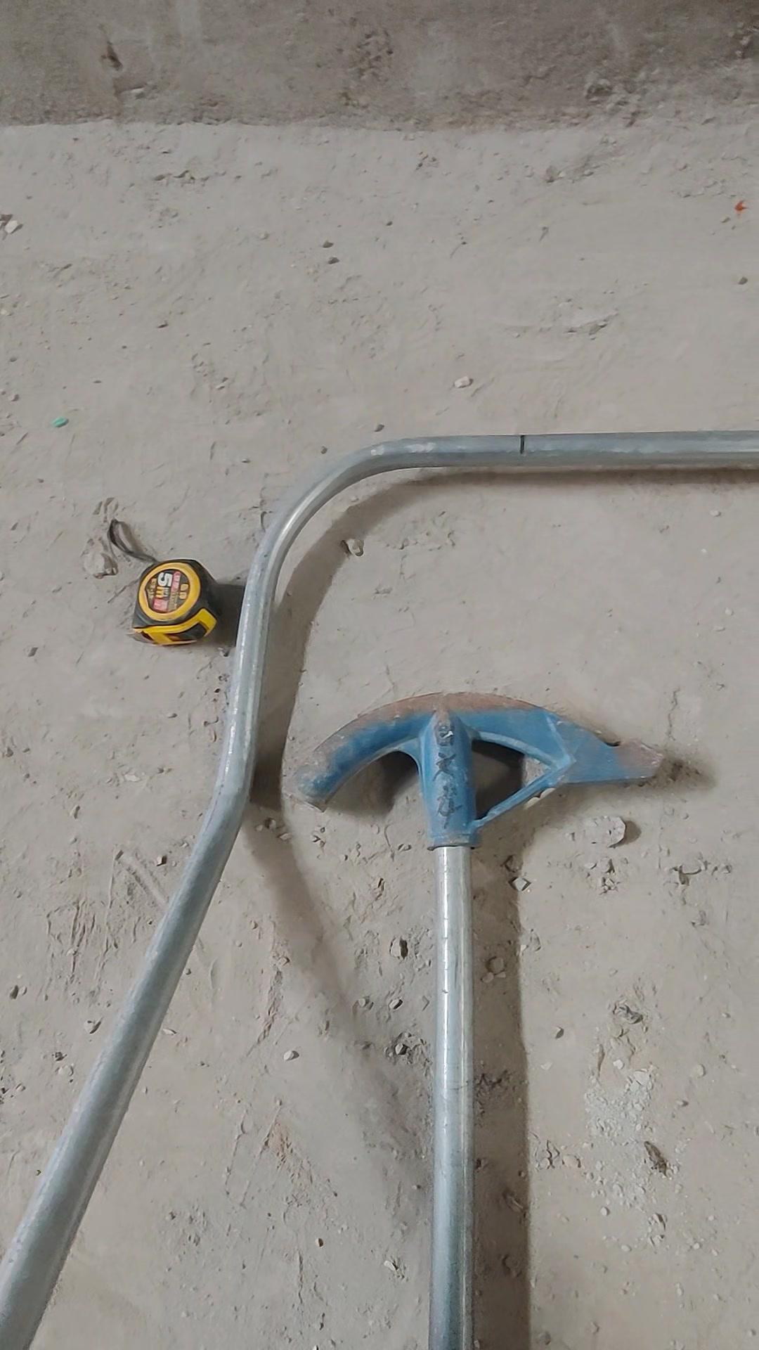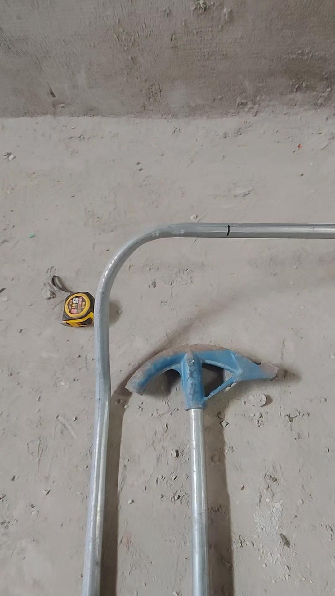 1️⃣量尺寸:先确定盒子离地面高度,取88公分,在68公分处做标记,要对着弯管器上口,这样弯出来的90度才标准 2️⃣弯管操作:用弯管机从标记处开始弯,力度要均匀,弯出的角度正好是90度,试装一下高度合适 3️⃣连接处理:按同样方法再弯一个小弯,与另一边连接,两个弯管就都弄好了,新手也能轻松学会