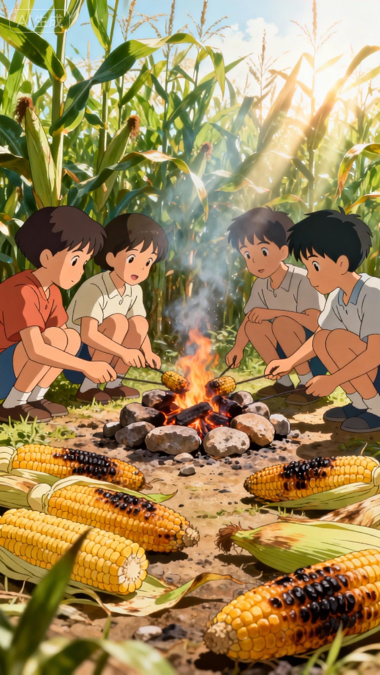 阳光、玉米地、烤玉米,童年的快乐简单到只需要一堆小火苗✨ 童年的小火苗 玉米地的温柔时光 烤玉米的快乐# 图片为AI生成