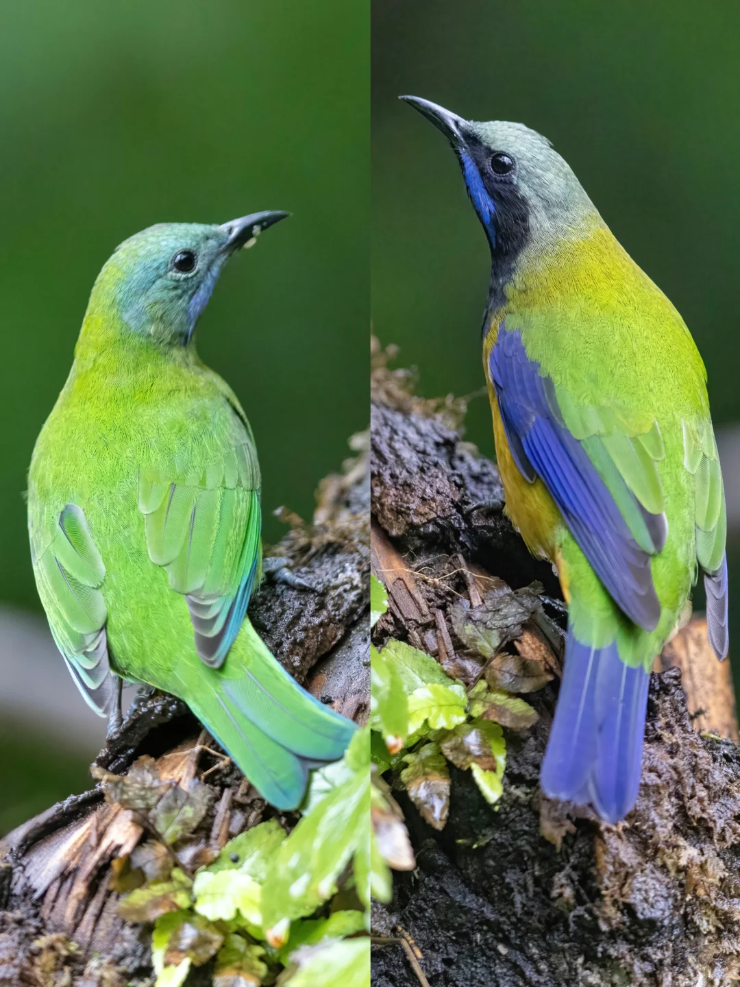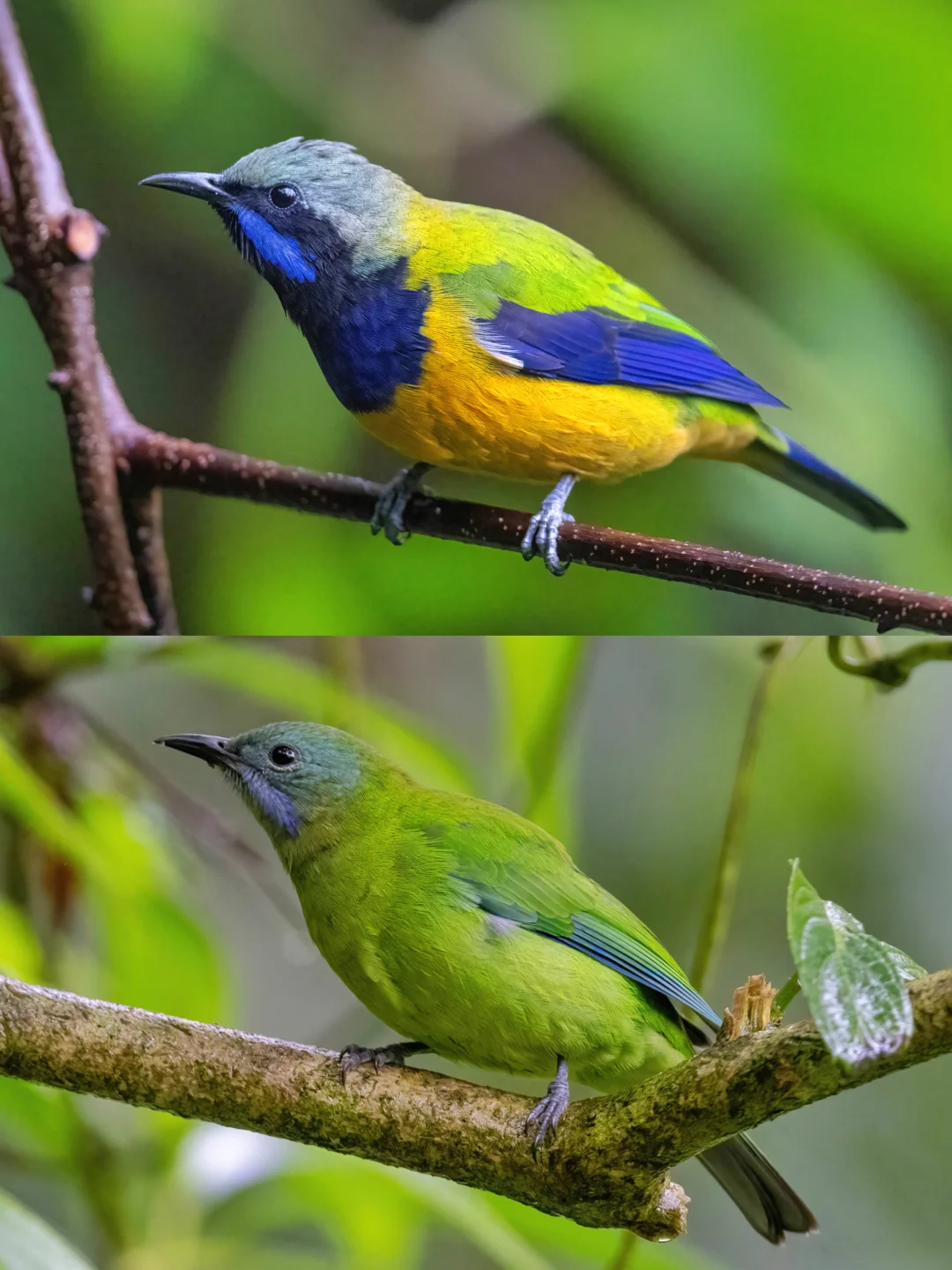 橙腹叶鹎的小情侣对比图