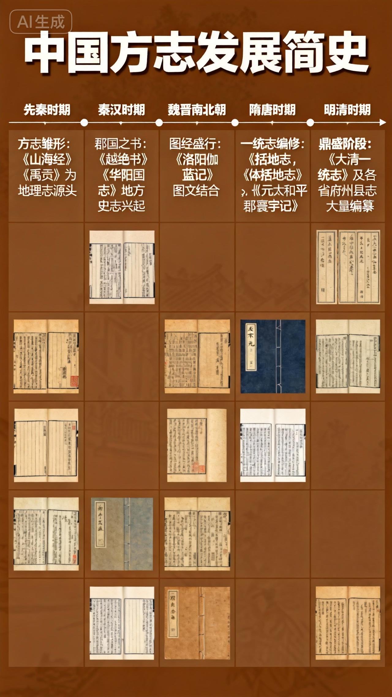 从周朝史官到当代新规!中国方志2000年演变史,藏着一方水土的千年记忆 国史、方志与谱系,并称中国传统文化三大源流。这部记录地域风土、历史沿革的“地方百科全书”,从周代萌芽至今,已走过两千余年的发展历程。 方志的源头可追溯至周王朝。当时中央与诸侯国设有“五史”官职,外史掌管“四方之志”,小史记录“邦国之志”,这些记载各地风貌的文本被称为“国别史”,正是方志的雏形。孔子周游列国时,就曾对近二十国的这类典籍爱不释手。 秦汉大一统后,治理广袤疆土的需求催生出地理志、地记等载体。汉武帝下令地方官报送记载山川、物产的“地志”,班固据此编纂《汉书·地理志》,成为首部系统的全国性地理总志。东晋常璩的《华阳国志》更具开创性,首次融合地理、历史、人物,奠定了方志“一方全史”的综合记述范式。 隋唐时期,方志以“图经”为主要形式,官修制度逐步成型。隋炀帝命天下报送风俗、物产资料,修成1200卷《宇区图志》,这是中国第一部官修志书。唐代规定州郡每3年(后改5年)编修图经上报,《元和郡县图志》体例完备,被奉为后世图经的范本。 宋代是方志发展的黄金时期,朝廷不仅多次下诏修志,还创设九域图志局,开国家设局修志之先河。当时郡县必修志,不修或修得潦草会追责,宋代方志数量超800种,《太平寰宇记》等巨著层出不穷。 元代完成了图经向方志的过渡,修成《大元大一统志》。明清两代,方志迎来鼎盛期。明成祖颁布《纂修志书凡例》,统一志书体例;清代皇帝亲自审阅志书稿本,戴震、章学诚等学者推动方志学正式建立,现存清代方志占全国方志总数的70%。 即便到了民国,方志编修也未曾中断。新中国成立后,方志工作迈入新阶段,2006年《地方志工作条例》颁布,规定每20年修一轮方志,为这项千年事业筑牢法律根基。 一方方志,一部地方史。这份承载着地域文脉的珍贵遗产,正跨越千年,向我们诉说着华夏大地的沧桑巨变。 我可以帮你提炼这篇文章的核心看点标题,方便你直接用于平台发布,需要吗?