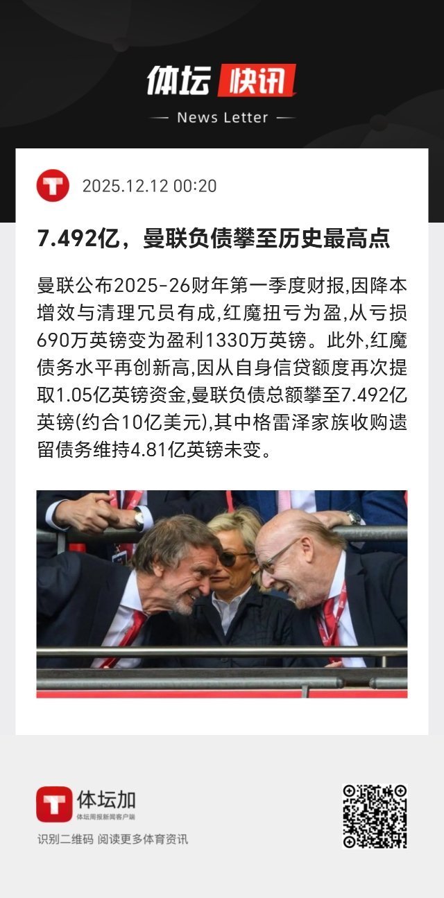 因降本增效与清理冗员有成,曼联扭亏为盈,从亏损690万英镑变为盈利1330万英镑。