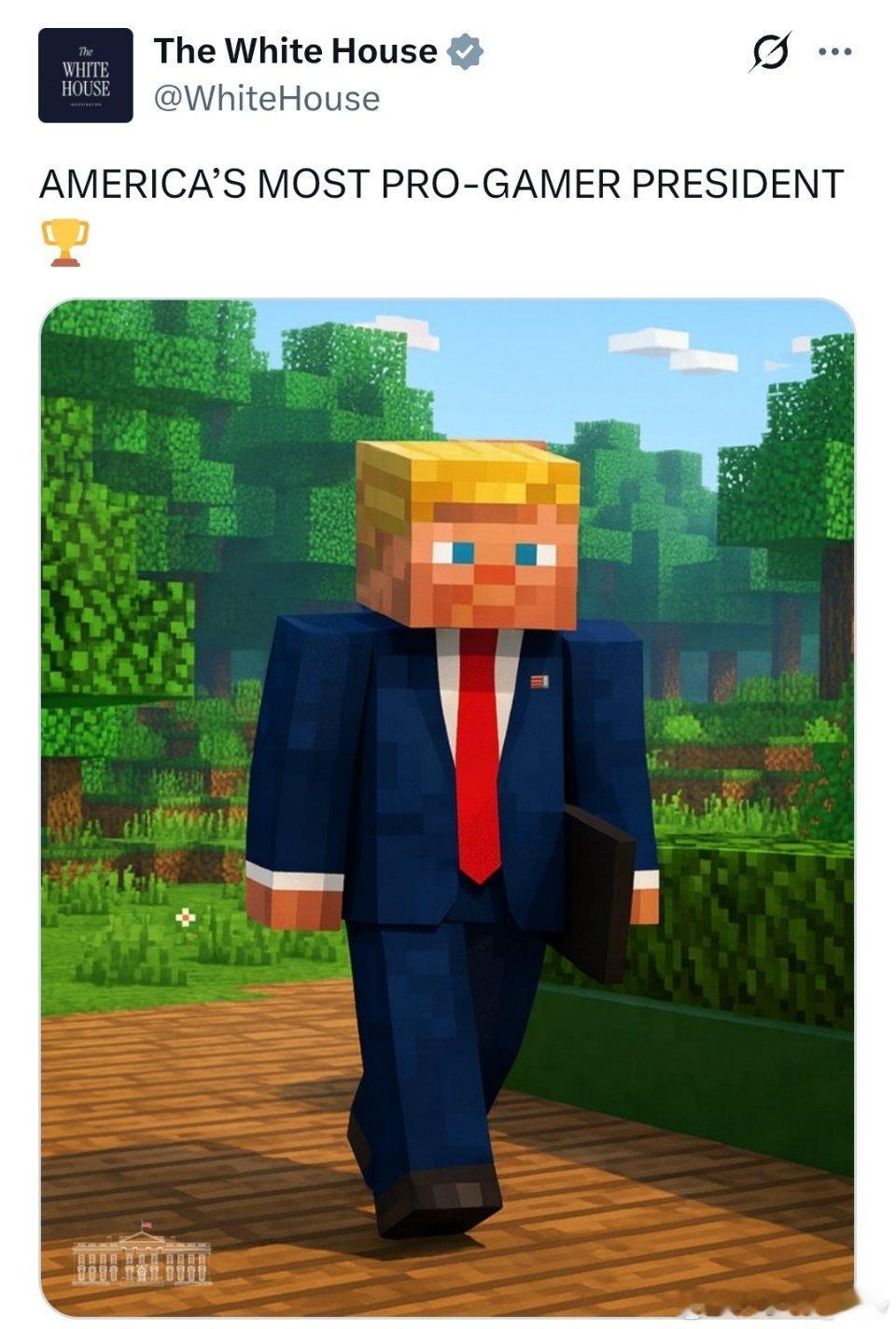 这是白宫官方账号发的图称他是”美国最支持电竞的总统”