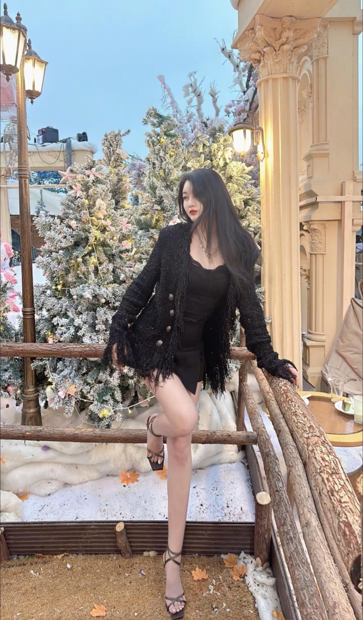 甜美少女风,黑裙搭配红唇,清新自然,气质出众!