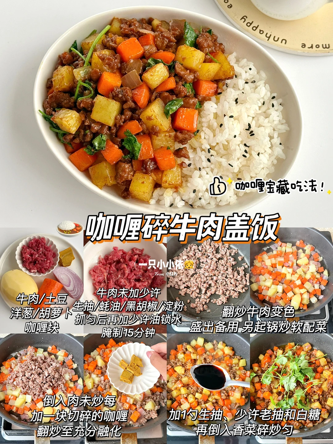 是谁!还没做过这6️⃣种小朋友香香饭!简直香迷糊了~一次只做一个菜,肉菜蛋米饭全get✅营养均衡又下饭,懒妈也能轻松搞定!👩承包宝宝们的一周菜单~ 不知道给小朋友吃什么的妈妈快来抄作业吧🧚♀️ - ——✨小朋友一周营养拌饭&盖饭✨—— 🍛咖喱碎牛肉盖饭 🐓鸡肉菠菜滑蛋饭 🍗葱油鸡腿盖饭 🦐番茄虾仁盖饭 🍄香菇卤肉拌饭 🐷肉末豆腐拌饭 · ✅食材及做法都在图片上啦,不明白的姐妹欢迎举手提问🙋♀️ ✅身材管理期麻麻也可以放心食用哦🥳 · 饱贝们都要开心干饭,快乐成长哦!下期见啦~👋