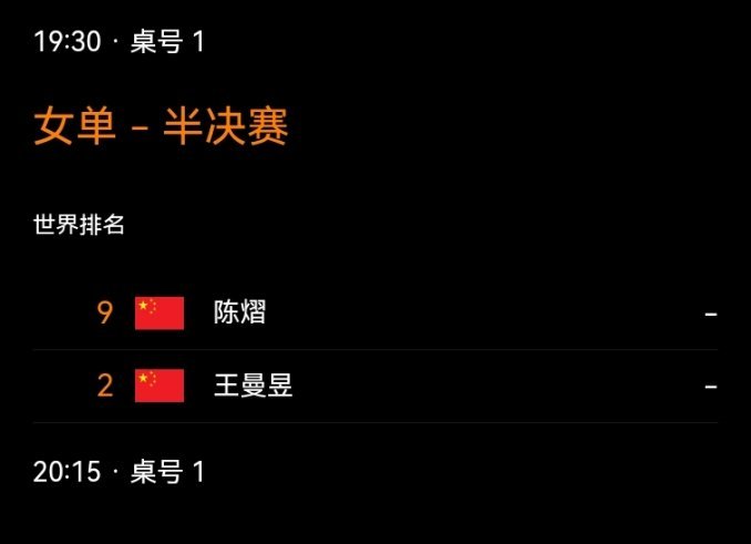 12月13日赛程香港总决赛女单半决赛王曼昱加油!健康完赛!王曼昱vs陈熠