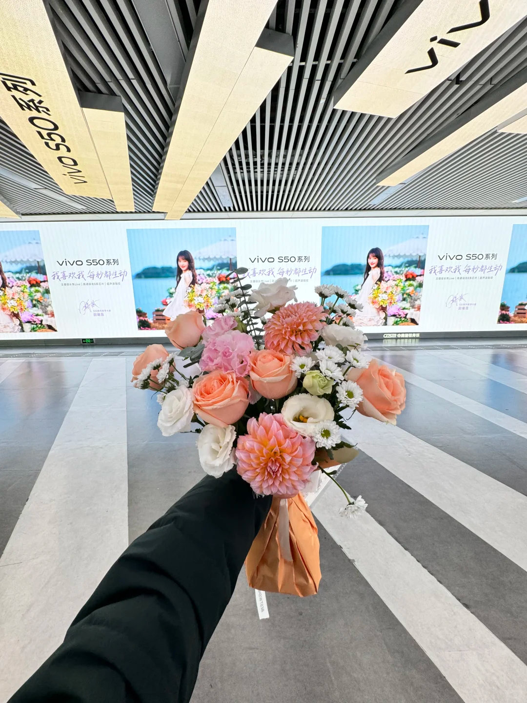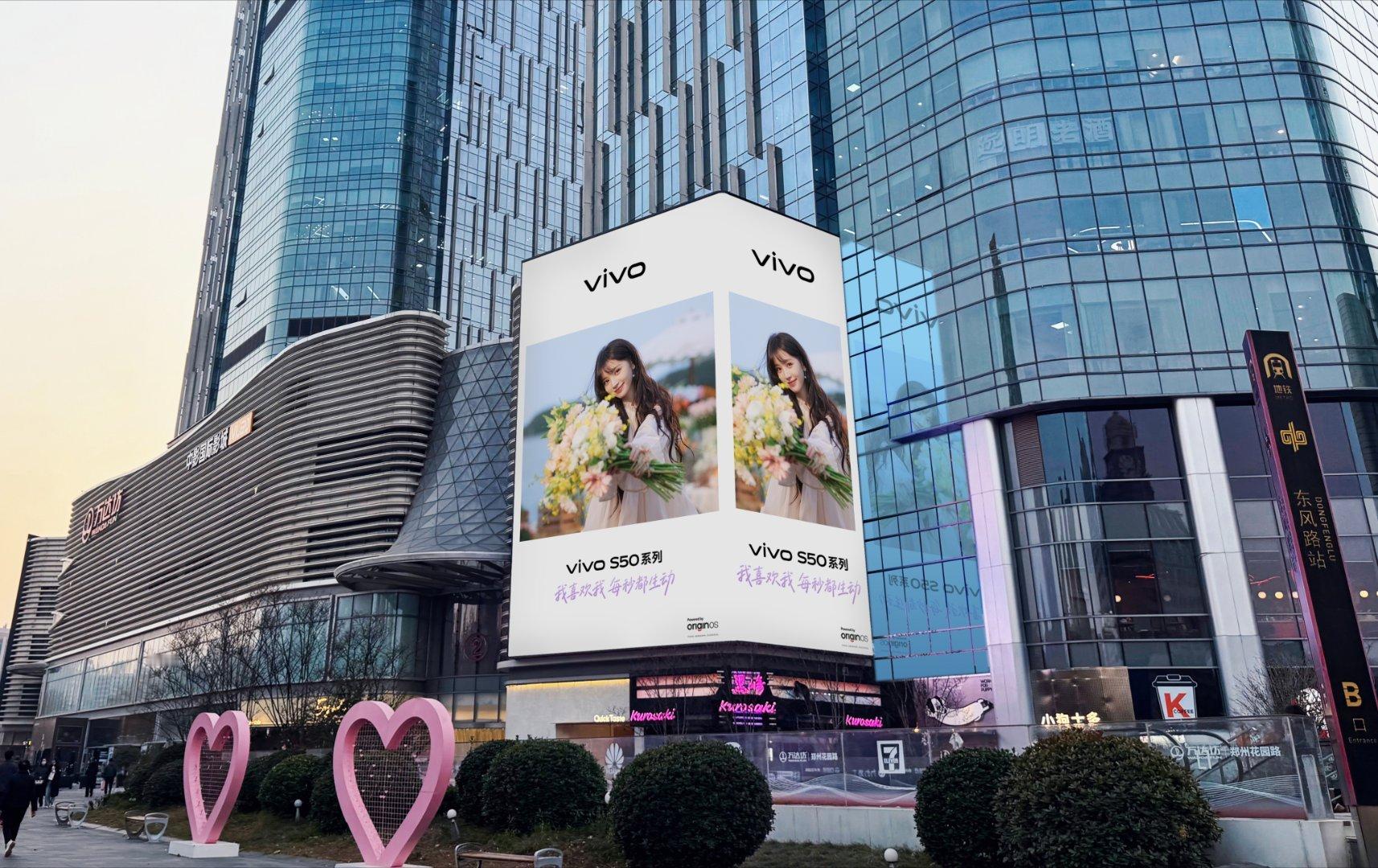 被街头一束花的仪式感拿捏 田曦薇在vivo S50街头大屏笑递花束,甜妹与鲜花的双向奔赴太戳心!全焦段影像精准定格这份浪漫,不管是街拍还是打卡,都能轻松拍出氛围感大片~vivo S50