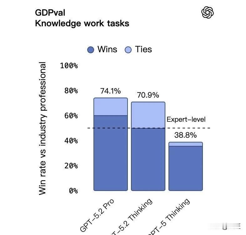 GPT-5.2:OpenAI十周年“王炸”,专业工作流的新引擎 GPT-5.2 不是“更大”,而是“更会干活”——把 44 种职业级任务做到 70.9% 超越或持平顶尖人类专家,同时把成本打下来 390 倍。 为什么这次发布被称为“王座易主”, 谷歌 Gemini 3 Pro 在 11 月登顶后,OpenAI 内部拉响“红色警报”(Code Red)。仅 30 天后,GPT-5.2 用数据反击: ARC-AGI-1:GPT-5.2 Pro 90.5 分,首破 90 大关,成本却降至 11.64 美元/任务,效率提升 390 倍。 SWE-Bench Pro:GPT-5.2 Thinking 55.6 分,刷新软件工程基准。 GDPval:44 个职业场景 70.9% 胜/平顶尖专家,速度是人类 11 倍,成本 < 1%。 技术底座升级:400K 上下文 + 128K 输出 长上下文:400,000 token 输入窗口,可一次性吞下 300 页 PDF 或整个代码仓库。 长输出:128,000 token 生成上限,单轮即可产出完整应用或万字报告。 幻觉抑制:错误回答相对 GPT-5.1 减少 30%,4-needle 256k 测试准确率近 100%。 视觉理解:图表/界面截图错误率降低 50%,支持像素级定位。 Sam Altman 预告“下周还有小圣诞礼物”,业内猜测可能是 DALL·E 4 或 Agents Store。真正的“Project Garlic”旗舰架构预计 2026 年初亮相,或将带来原生多模态统一模型。 GPT5.1 学术型GPT GPT5 GPT-5 Sam Altman