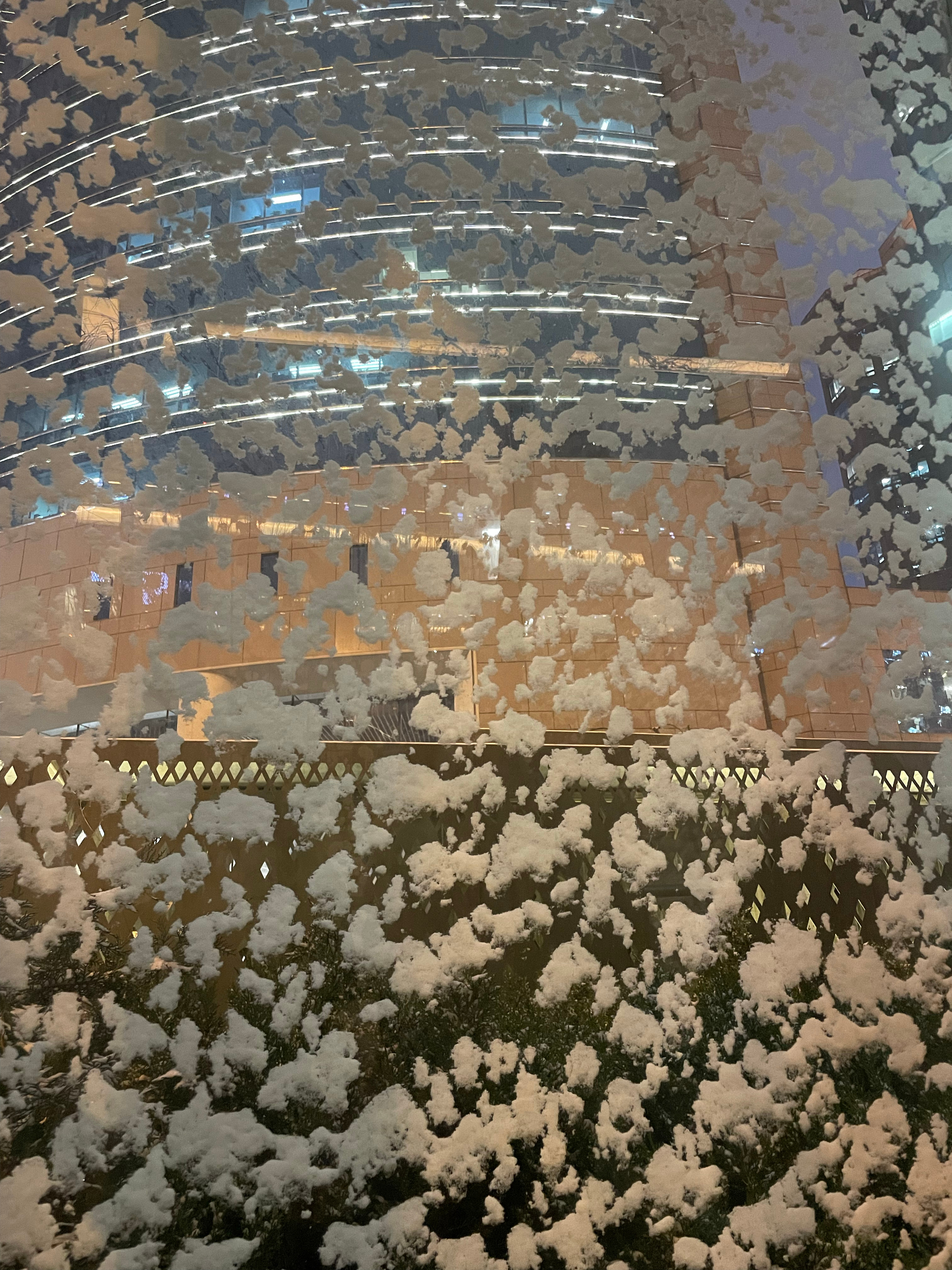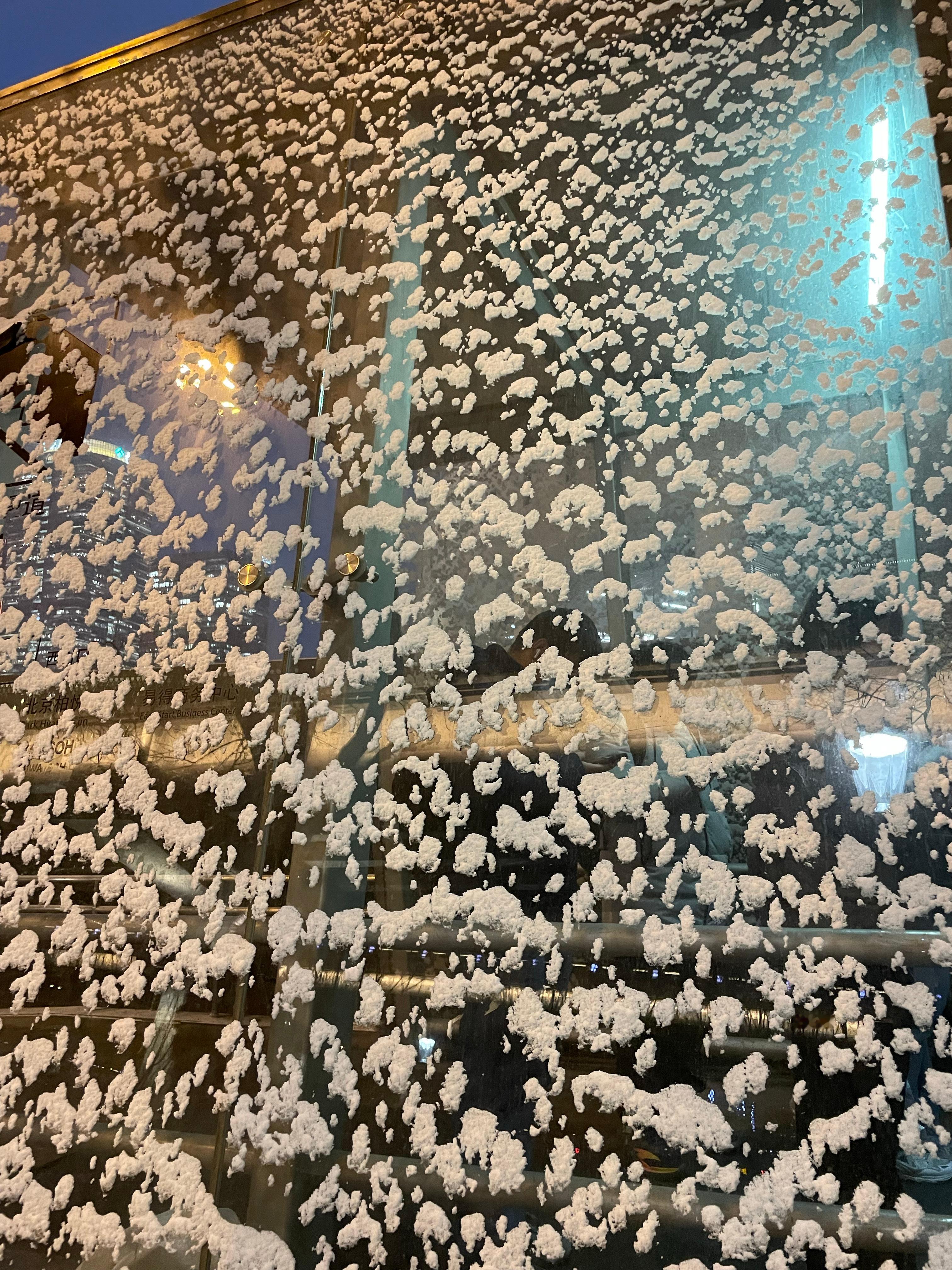 快看啊下雪了,外面北京初雪落了一层了,有北方冬天的感觉了!快步走,赶火车回家不知道天津也下雪了吗?