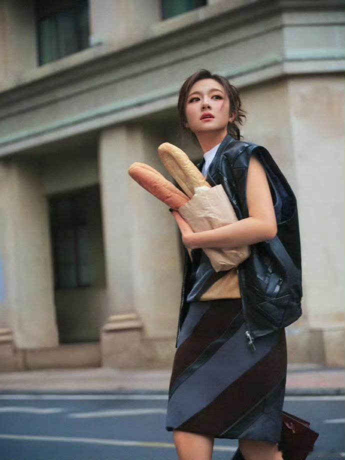 李兰迪早八都这么美早八造型玩转通勤美学,法棍配花束氛围感拉满,赶路秒变街拍,清