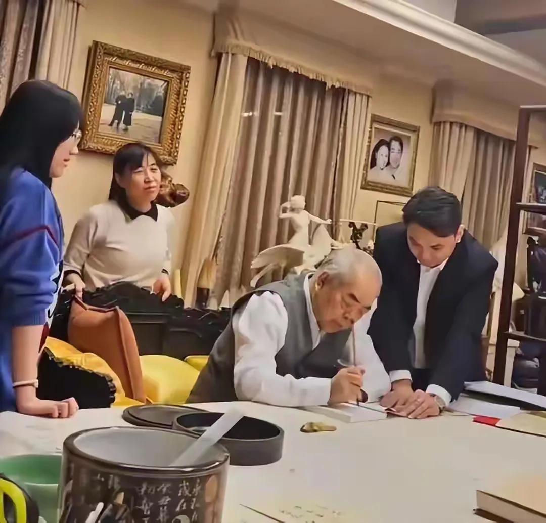 徐萌爱不爱范曾,我不知道,但是可以肯定的是,她非常大度,识大体,深得老爷子的心。 范大师的家中装修的富丽堂皇,也非常有格调与品味。 徐萌陪范曾在房间练字,可以清晰的看到墙上挂着几幅范曾与第三任妻子楠莉的合影,徐萌一点不介意。 可以看得出,徐萌是一个非常聪明的女人,也非常大度。 当年,范曾对楠莉一见钟情,电光火石之间不能自拔,不惜从朋友的手中夺下她,两人携手相伴近30年,可想而知,在范曾的心中,地位不一般。 因此,徐萌也无需计较,反而以自己的大度格局来感化范曾。 范曾一下高兴,宣布他所有的事务由徐萌来打理,将来的继承人呀。 这一次,范增官宣他与第四任妻子徐萌生下独子,非常喜悦,但同时也与亲生女儿范晓惠,以及继子范仲达断绝了关系。 家大业大,范老的家事一直以来在网络上沸沸扬扬,子女们对他娶小50岁的娇妻非常反对。 范老虽然有过三段婚姻,但只有唯一的女儿范晓惠,其实早就应该生个孩子,继承家业了,以免外人虎视眈眈。 楠莉1993年嫁给范曾,立刻把须遵德那两个儿子改名为范一夫、范仲达。 范曾对他们视为己出,如今,范仲达挑战了范曾的底线,加上已经有了亲生儿子,因此被踢出局。 专业医生告知大家,范曾虽然已经是87岁的高龄,但是并不意味着他就没有了生育能力,因此网友也不必过虑,孩子也无需做亲子鉴定。 这段老少恋常被众人诟病人,总是有人认为他们的爱情不及杨振宁与翁帆的感情那样纯净美好。 但是每个人都有追求爱情的权利,杨振宁翁帆的恋情被传颂,而范曾与徐萌被骂,不公平,在追爱的路上是平等的。鸳鸯被里成双夜,一树梨花压海棠,送上祝福吧!