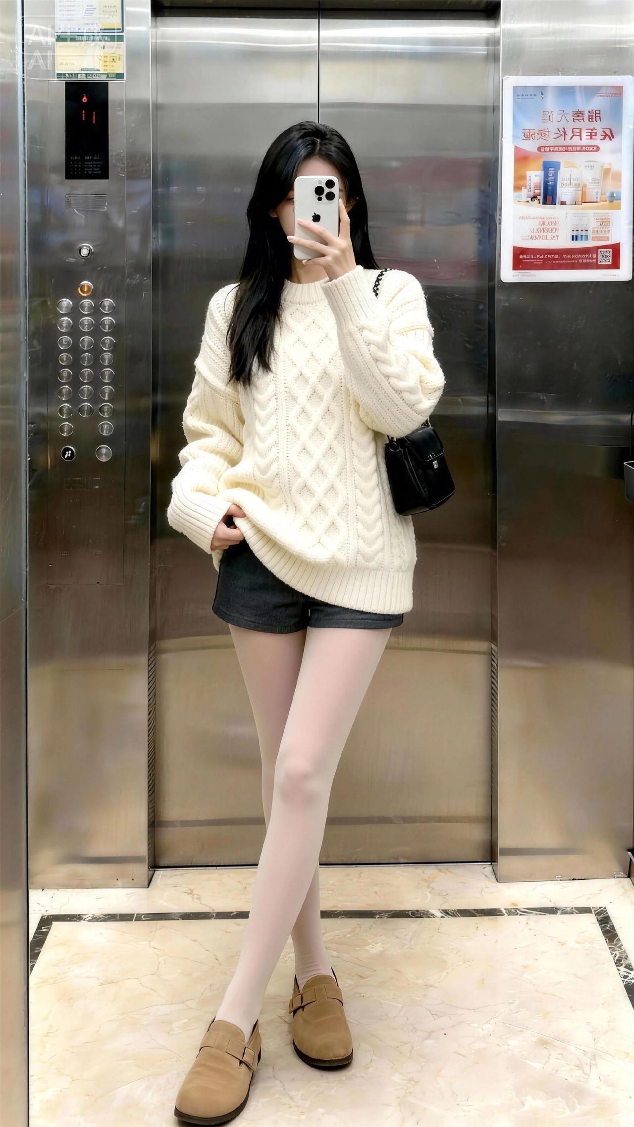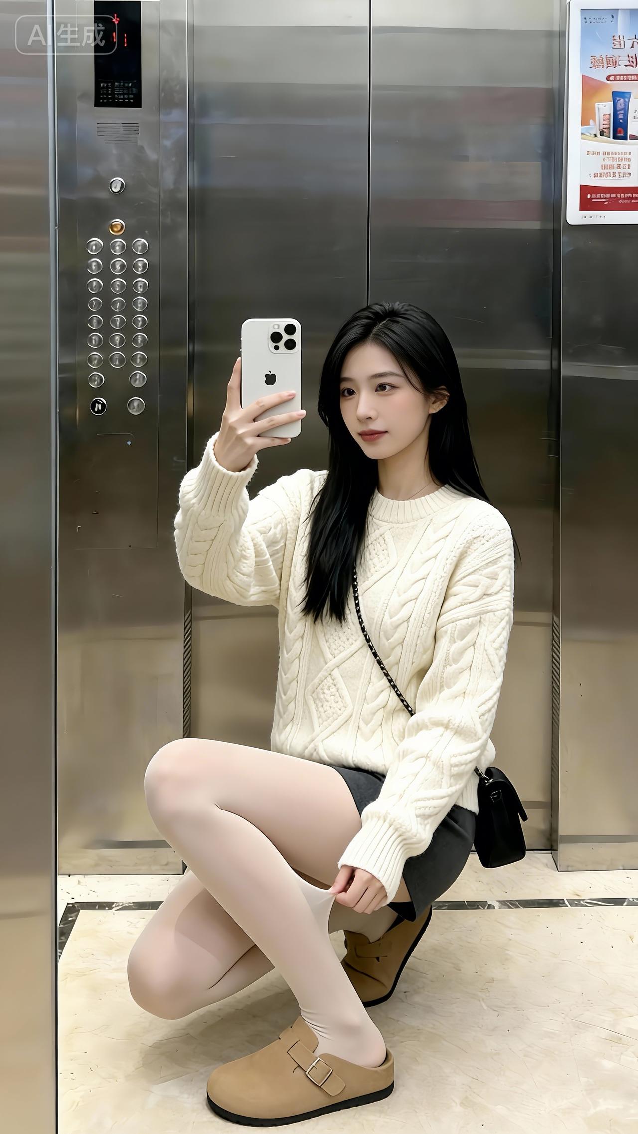 电梯拍照 大长腿 穿搭 丝袜穿搭