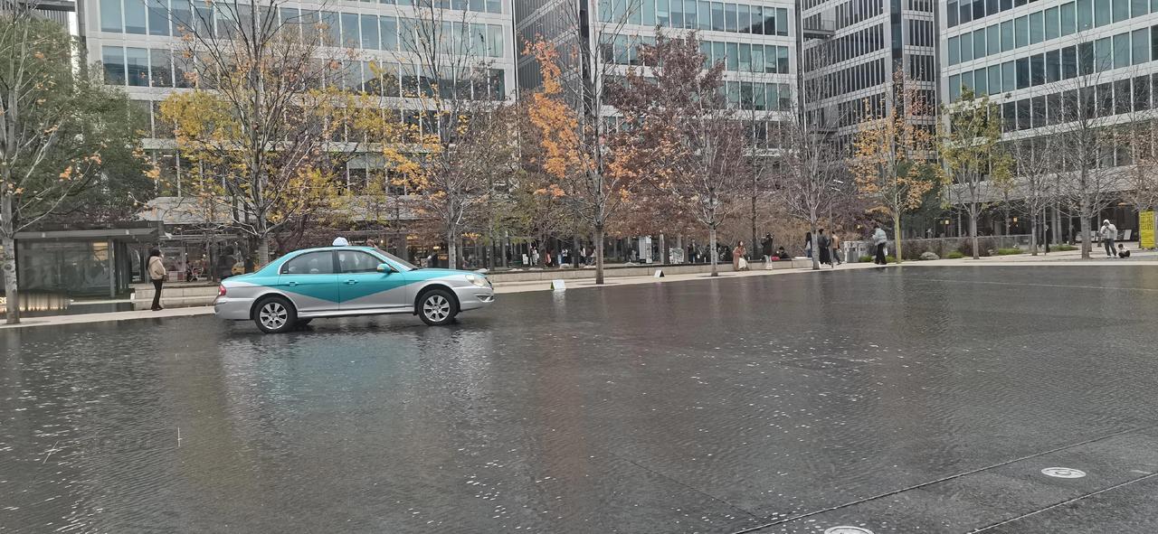 房地产进入存量时代,向低效无效资产要效益,迎着旧区改造和城市更新春风,今天体感杭州天目里,这辆停在水里的出租车,为什么停在这啊?街头随拍 城市街拍 这座城市