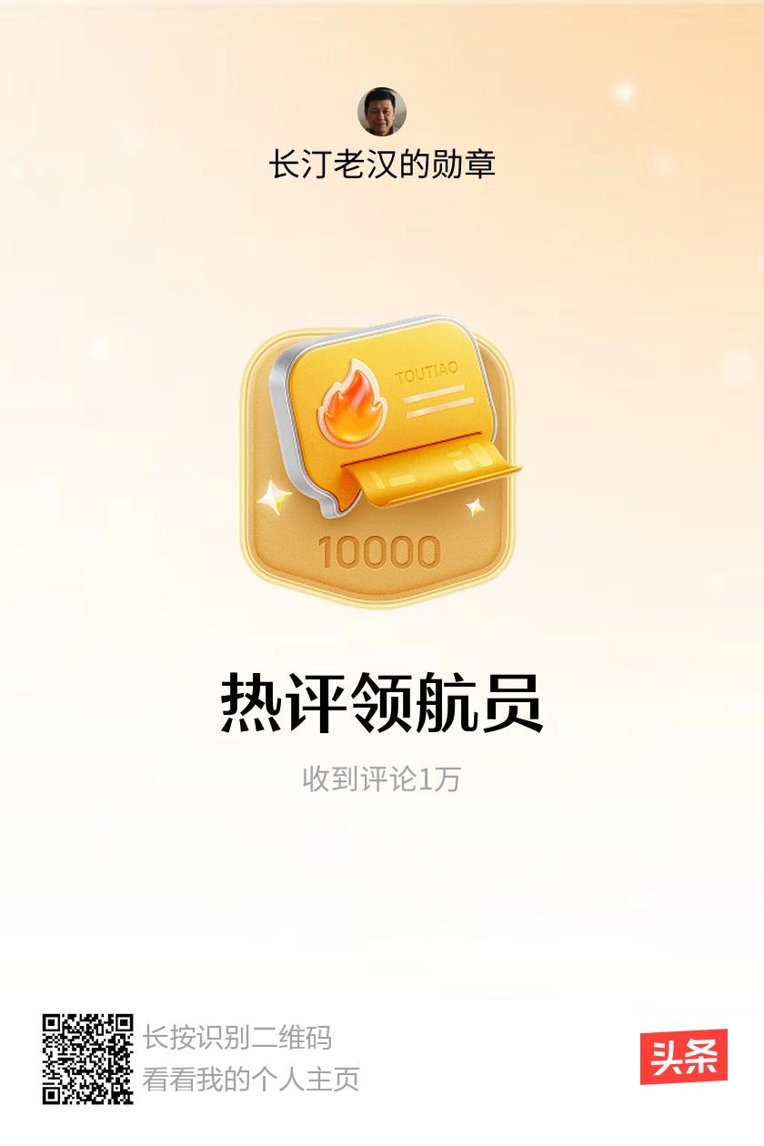 我获得了【热评领航员】勋章!邀请你一起集头条勋章、记创作之路!
