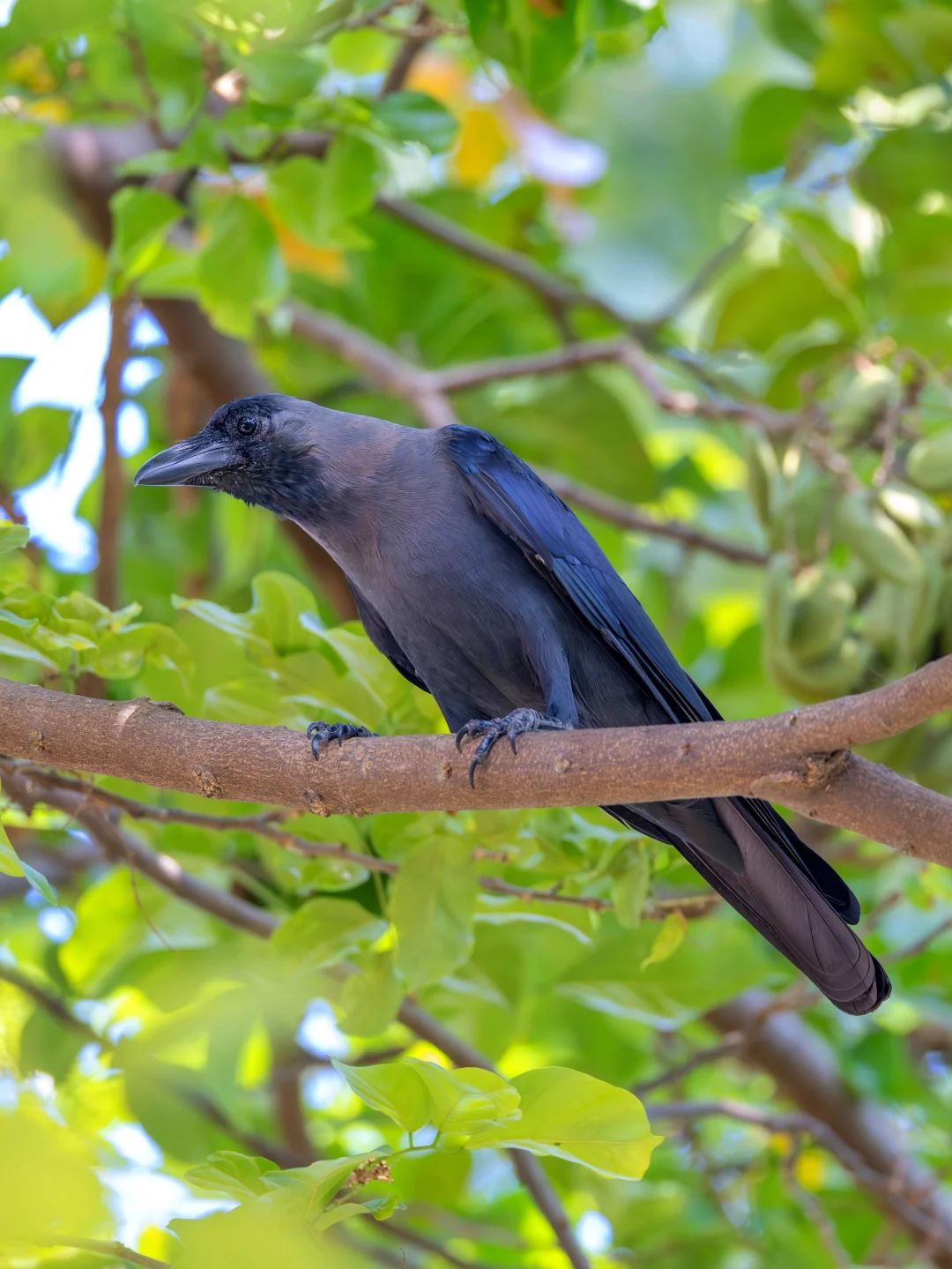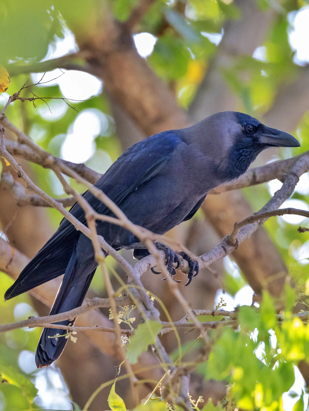 原创拍摄于2025.01 家鸦,雀形目鸦科鸦属。一种略瘦小的乌鸦,身体是黑色,颈部是灰色,身体的黑色在阳光下照耀,显现出五彩斑斓的黑。既然名字叫家鸦,说明它们喜欢进入人类的社区生活,其实也可以视为是人类侵入了它们的领地,不过他们适应的也很好,因为它们的腐蚀的习性,喜欢在人类的垃圾,剩菜里寻找食物。 家鸦其实主要分布在印度和中南半岛西部,在当地是常见鸦科大佬,但是在我国只有云南和西藏南部能够看见家鸦,还稀罕上了。