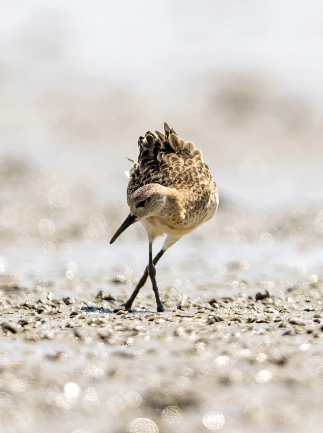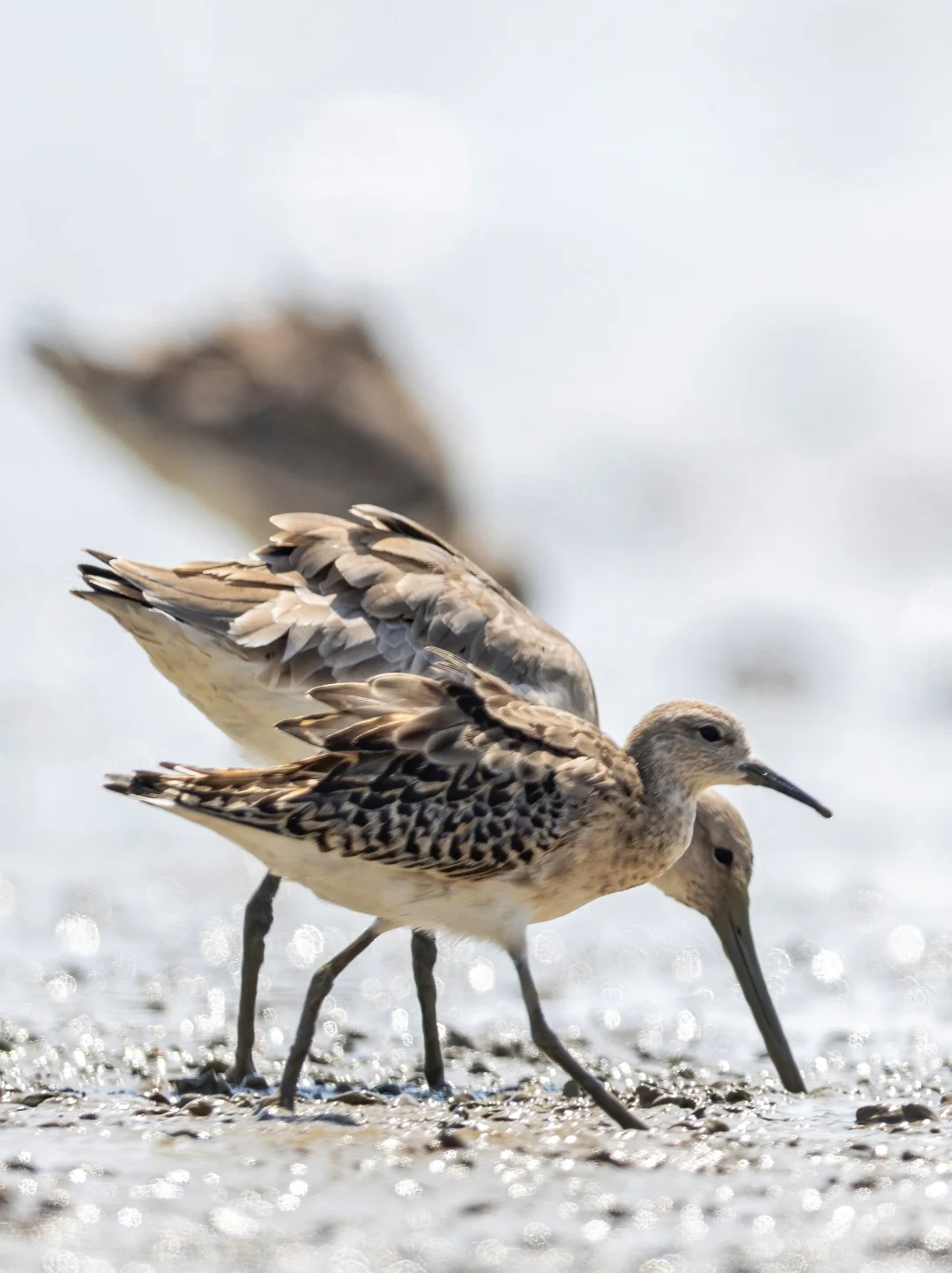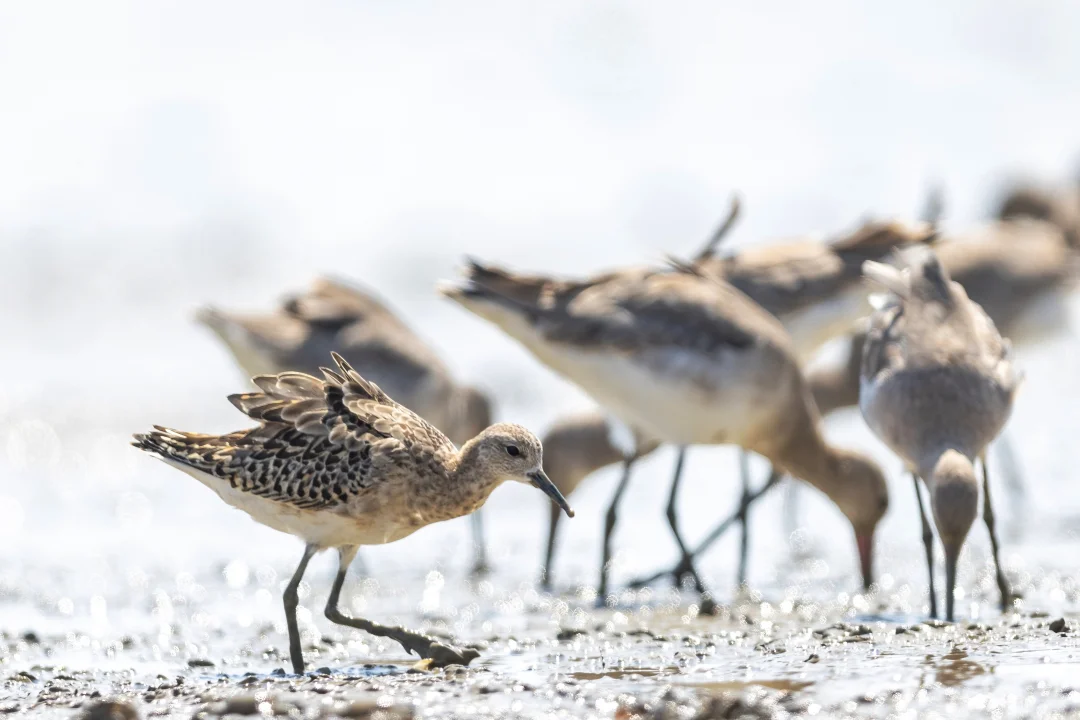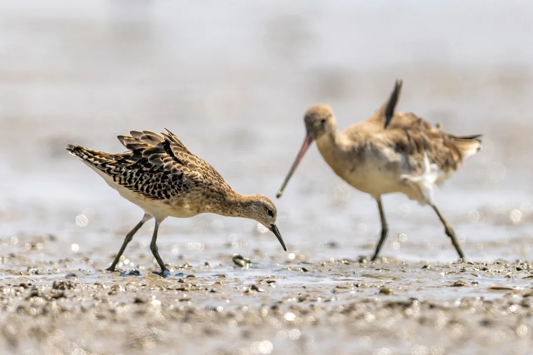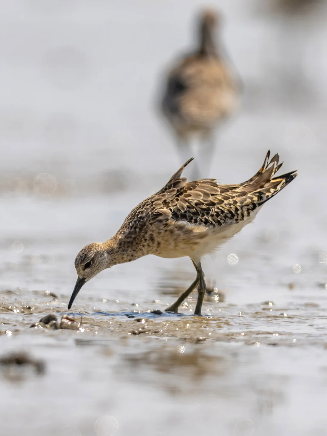 在我国看到的很多是迁徙的个体,比如这只近期深圳湾公园的明星,他们通常都是9月份途径深圳啦。这只和黑尾塍鹬一起到达深圳湾,已经在这里停留超过一周了。