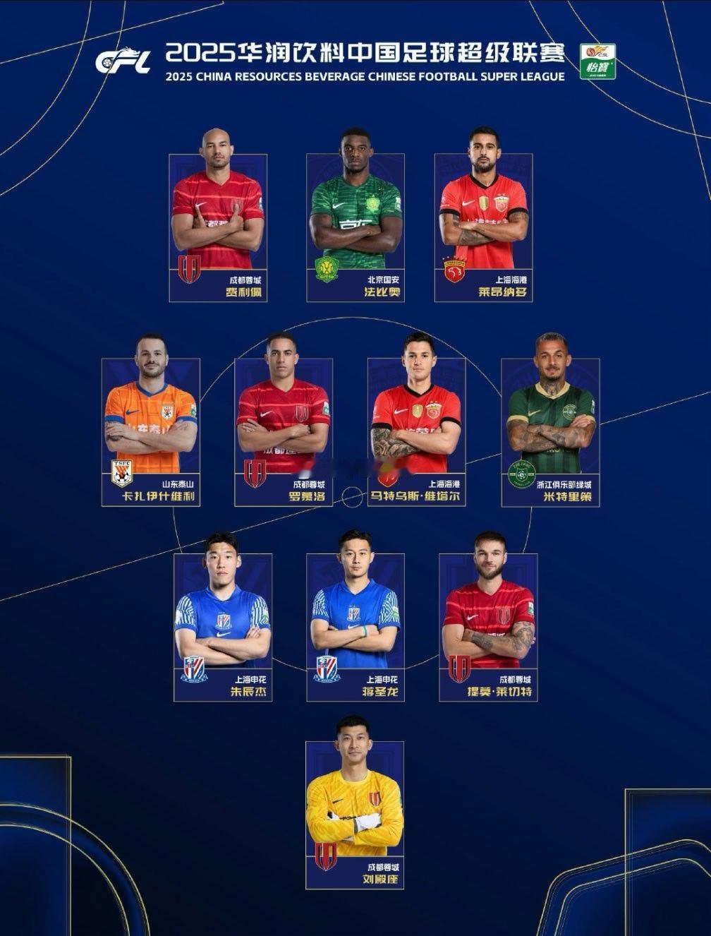 2025中超最佳阵容 我觉得倒是没问题,但有个小问题,中超一共首发五个外援,但你官方有几个?