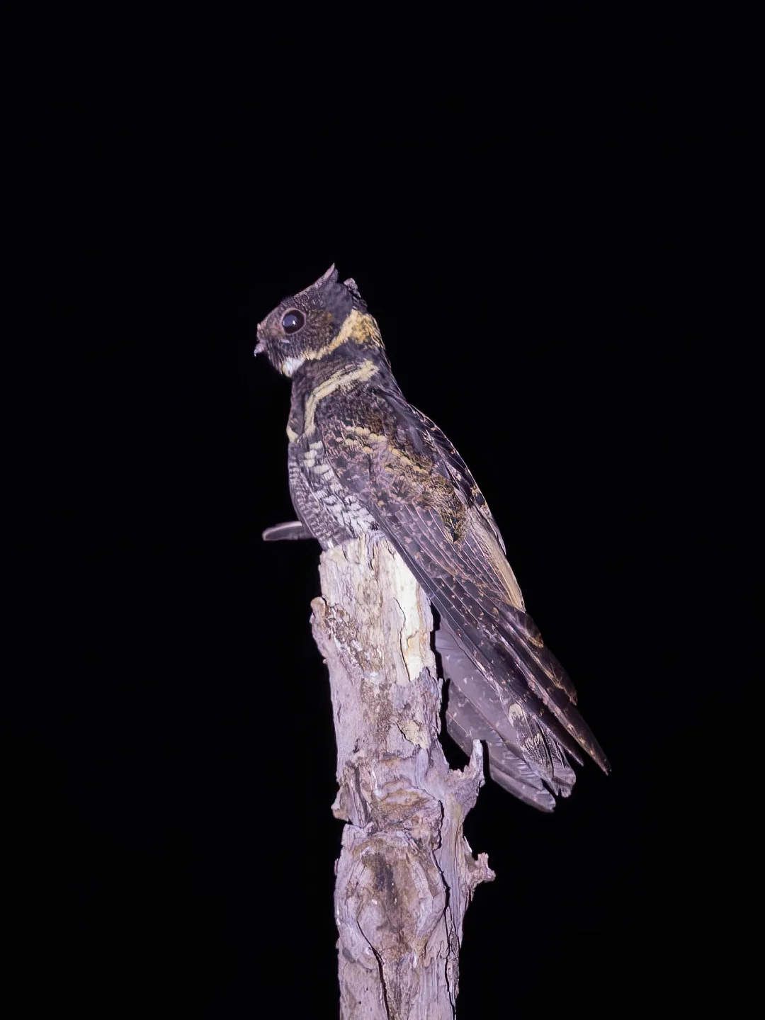 这种夜行的鸟类乍一看以为是猫头鹰,不过是一只和猫头鹰亲缘关系不近的夜鹰。而它最独特的特点是拥有明显的耳朵,这两只耳朵特别是在站立的时候高高翘起,像一对龙角。而毛腿耳夜鹰的尾巴也非常长,看上去姿态非常的优雅。在夜里不论是战斗还是飞行,都与黑夜融为一体。不过它们不同亚种之间颜色差别很大。