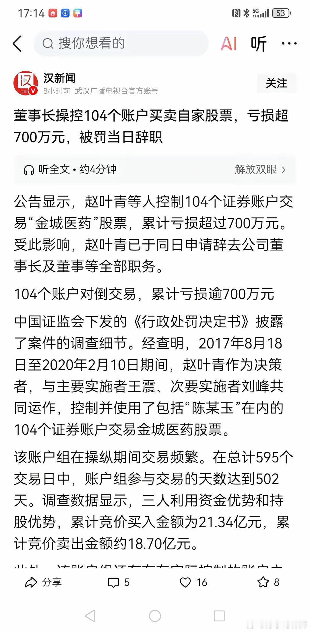 金城医药的老板真不合格,自己坐庄操纵自家的股票,控制104个股票账户,累计买入21亿元,忙活三年,反倒亏了700多万,被监管机构查处,接受应有处罚。以前的魔高三尺,现在的魔高三丈,金城医药的老板属于传统坐庄的,可时代变化了,在量化交易面前,小巫见大巫,量化可以收割散户,也可以收割庄家,坐庄和量化都是股市的毒瘤。